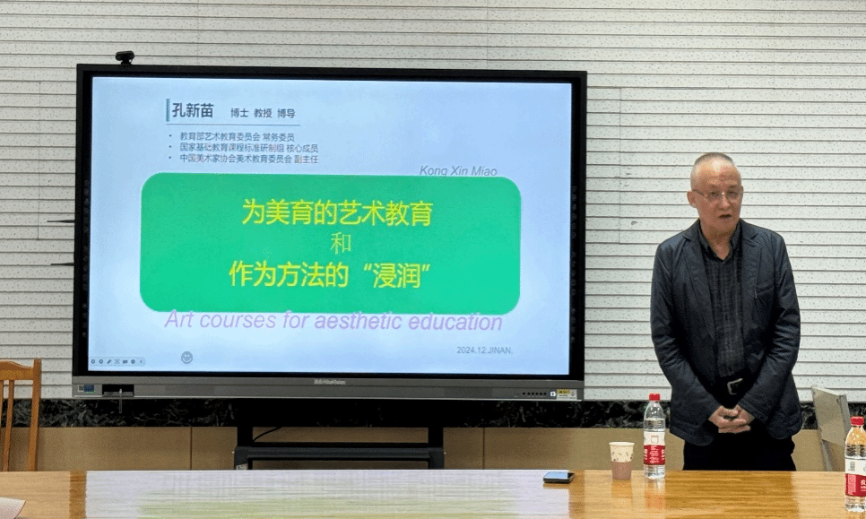 为进一步推动美育教育的内涵建设,提升我校美育教育的质量与水平,在教务处的指导与支持下,12月9日,太阳成集团tyc151cc组织召开了太阳成集团tyc151cc美育教育研讨会。此次研讨会邀请了全国高校美育教学指导委员会委员、山东师范大学博士生导师孔新苗教授,太阳成集团tyc151cc教务处副处长张海鹍教授,太阳成集团tyc151cc党委书记孙翔玲、副院长王建成,美育教学改革重大项目课题组成员以及太阳成集团tyc151cc、美术学院相关骨干教师及研究生共计50余人参加此次研讨会。