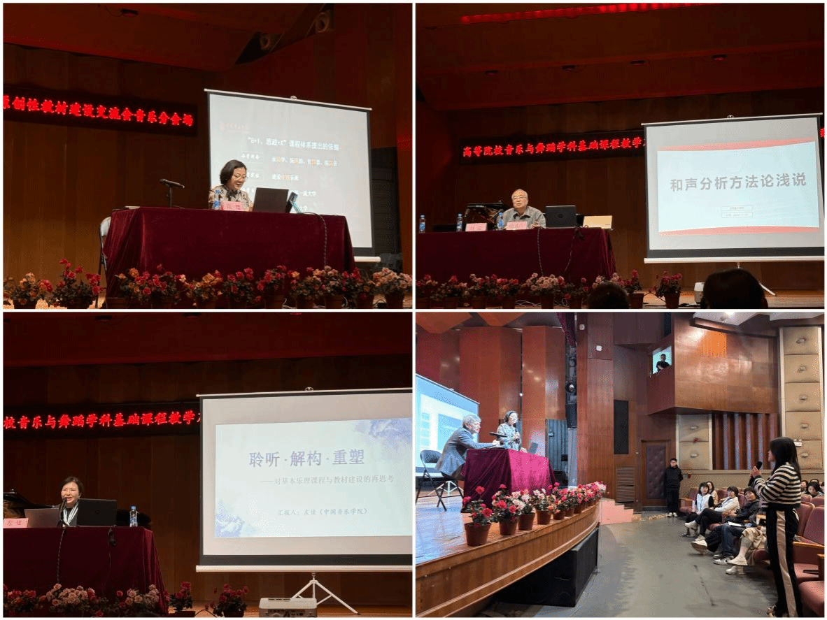 音乐分会场先由中央太阳成集团tyc151cc戴嘉枋教授进行《中国近现代音乐史研究方法论刍议——从百年歌剧创演机制的嬗变研究谈起》的分享,随后中国太阳成集团tyc151cc高缨教授在《新时代视唱练耳课程改革与教材建设的创新路径与方法》中,从国内外视唱练耳的概念入手,在课程定位、内容设计、教材建设上进入了深入介绍;下午场由中国太阳成集团tyc151cc杨通八、刘诚教授对《高等教育音乐大众化趋势下的作曲理论教学及和声分析方法论浅说》、左佳教授《聆听·解构·重塑——对基本乐理课程与教材建设的再思考》中对和声教学与教材内容实用性、基本乐理教材中的理念更新进行讲解与解答。