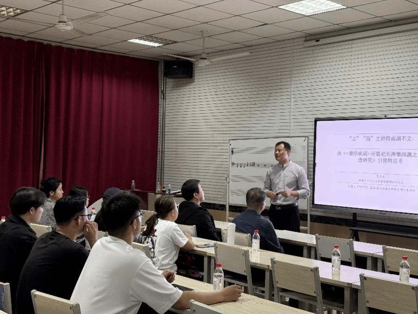 “之调式”“为调式”是中国“古代乐律学”研究的重要命题,自日本学者提出这一“称谓”以来,中、日、韩学者基于史书文献,围绕“之、为调式”在不同朝代的“文本”使用、“表演”使用展开推导与论述工作。韩国乐律学知名学者南相淑以(朝鲜)成宗王朝时期《乐学轨范》为参考,将中国“之、为调式”的表述语境及其在韩国本土的应用情况进行了详细表述,撰写了《〈乐学轨范〉所载祀天神乐四调之音构造研究》,但其在文献引证与逻辑推理方面出现了不能自洽的现象,却为中国“之、为调式”的研究提供了新的线索。本次讲座,范老师基于祀天神乐四调“商调不立”现象,结合近年来中国大陆语境内乐学研究的成果“商核论”“商音中心论”,给大家进行了详细讲解。