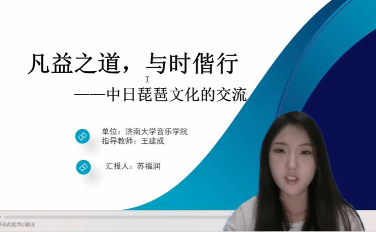 我院其他23名硕士研究生也通过同步的线上会议进行汇报,从福建南音、昆曲艺术、琵琶音乐、中日文化交流、南洋音乐文化、跨文化交流等多个视角,探讨海上丝绸之路音乐文化的历史、发展、推广与传承,充分展示出我院研究生的学术热情,以及良好的学术素养、科研能力与创新意识。