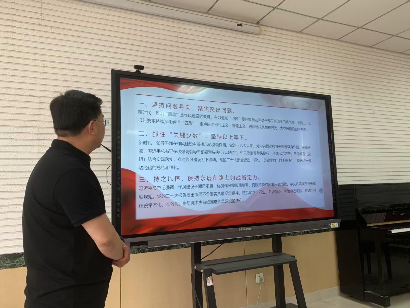 孙翔玲结合学习习近平总书记关于全面加强党的纪律建设的重要论述收获感悟,从中央八项规定出台的历史背景、重大意义和核心要求出发,结合新时代全面从严治党新形势,讲解了作风建设对党和国家事业发展的影响,违反中央八项规定精神的危害,并结合学院工作的实际情况,提出了学院在开展深入贯彻中央八项规定精神学习教育方面存在的问题和整改方向。一是坚持问题导向,聚焦突出问题。这是新时代作风建设的显著特征。进入新时代,学院将“四风”问题作为作风建设的核心矛盾和重点任务进行整治。开展深入贯彻中央八项规定精神学习教育不仅需要党组织和领导干部的推动,也需要各位党支部书记、每一位党员同志主动践行、积极参与。各级党支部与党员同志要压紧压实主体责任,坚持个人学习与集体教育相结合,个人层面注重知行合一、学用结合,将学习教育的成效融入学院的党建、教学、科研、社会服务等工作中。二是抓住“关键少数”,坚持以上率下。领导干部在作风建设中发挥着示范和引领作用。党的十八大以来,党中央多次强调,领导干部要以身作则,在改进作风上作出表率。学院班子成员要带头严于律己,自觉接受师生监督;要带头学、带头改、带头抓,以上率下,发挥示范效应,成为转变工作作风的“急先锋”。三是强化责任担当,推动开展深入贯彻中央八项规定精神学习教育见行见效。作风问题本质上是党性问题。开展深入贯彻中央八项规定精神学习教育是新时代加强党风廉政建设、推动作风建设向纵深发展的重要保障,各党支部和广大党员同志要以此次学习教育为契机,学深悟透、以学促干,聚焦政治意识、坚持问题导向、强化责任担当,推动学习教育入脑入心、走深走实、见行见效,将纪律要求转化为行动自觉,切实转变工作作风,共同营造学院风清气正的政治生态。