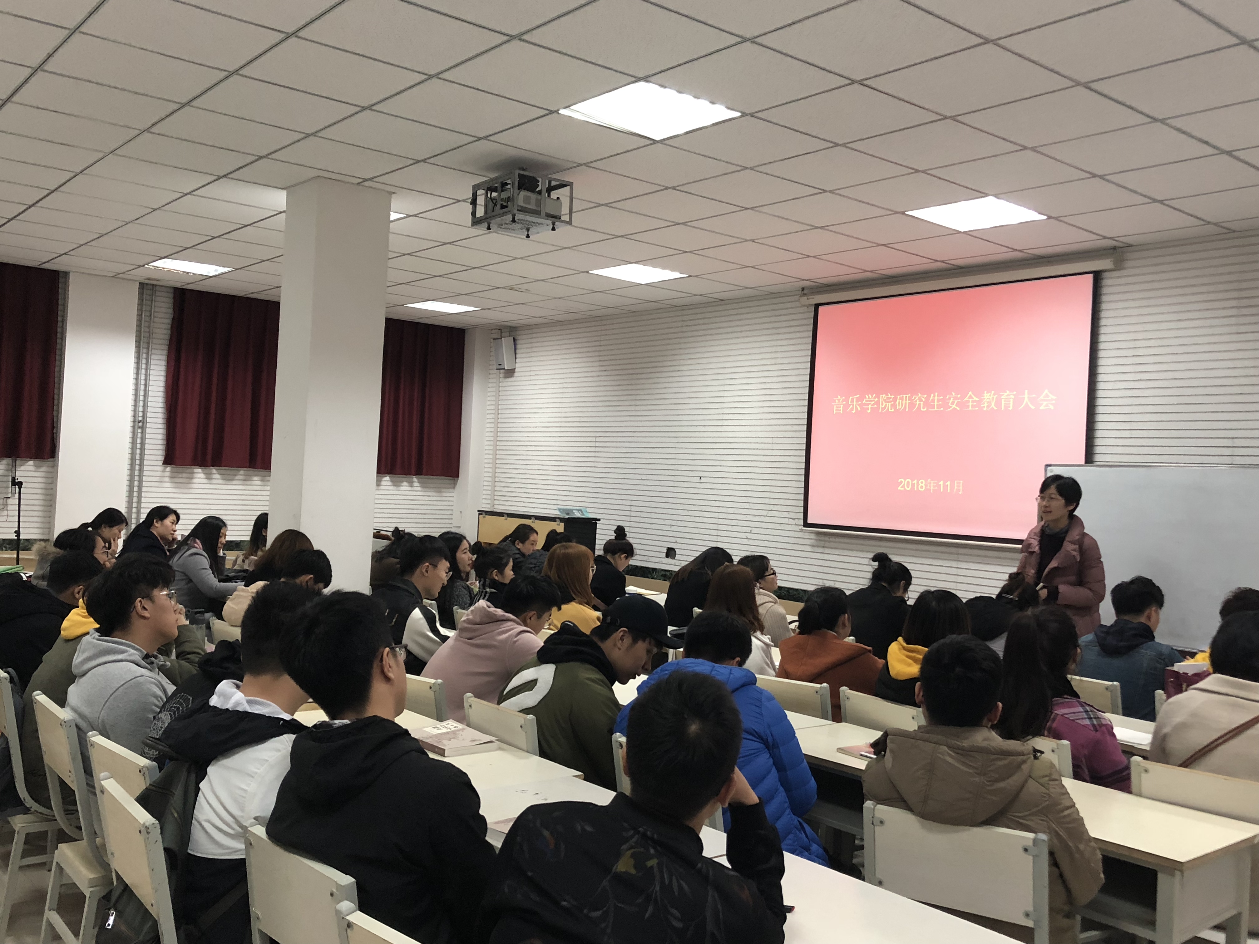 会上,宋老师强调了研究生安全工作的重要性,提醒大家要时刻紧绷安全的弦,主要从交通安全、宿舍安全、信息安全、求职安全、饮食安全等方面对学生进行了安全教育。会议着重就我院研究生外出上课涉及到的安全问题做了强调。随后宋老师强调了请销假程序、宿舍卫生、综合测评等问题。