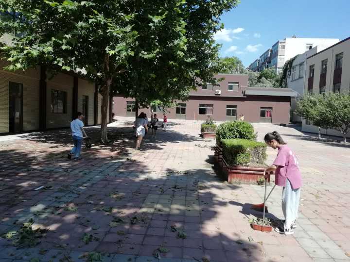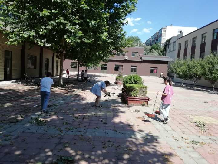 6月28日,太阳成集团tyc151cc学生党员在学院中庭开展卫生清理活动。