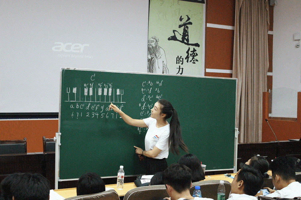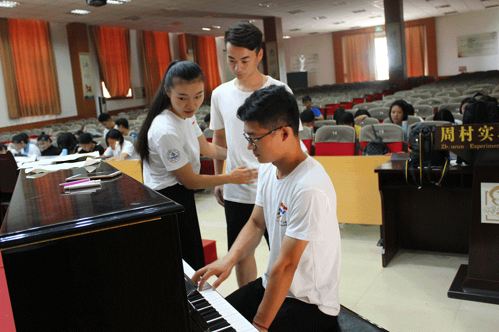 下午,实践团迎来了一位舞蹈老师,李发鹏老师,他先是对舞蹈同学们的柔韧度展开一定的训练,然后带领志愿者们对舞蹈《人间大爱》进行动作编排;另一边,声乐组志愿者带着同学们一同观看欣赏了《第九届中国魅力校园合唱节》的现场直播,之后又给他们讲解了一些基础的乐理知识,受到了大家的一致好评。