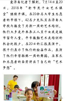 2018年“新市民子女艺术课堂”于7月20日圆满落幕!这些媒体也时刻关注着新市民的成长与进步。