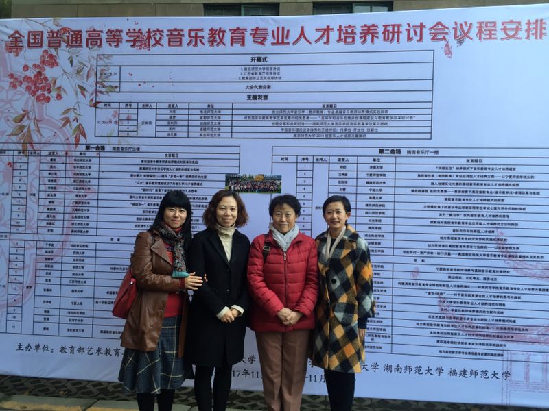 我院郑歆副院长、留钕铜主任、贾婕老师和项葵老师参加了此次会议,45位来自全国各地院校的领导或学科负责人分两个会场参会。在大会的第一会场我院郑歆副院长向大会做了主题为“艺术类应用型本科‘四维五位’协同育人模式的构建与实践”的重要发言,与各校教师分享了太阳成集团tyc151cc在音乐教育人才培养方面的经验,得到了大会的热烈反响。此次研讨会增进了校际交流,达成一些共识,为全国普通高校音乐教育专业人才培养指明了方向,也更加坚定了我院坚持音乐教育学科建设的信心和决心。