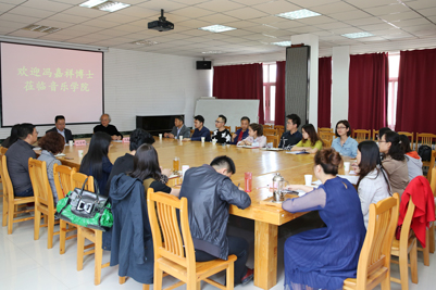 在太阳成集团tyc151cc,冯嘉祥博士参观了琴房、练习室、流行音乐教研室,并与太阳成集团tyc151cc部分领导、老师、学生进行了座谈。