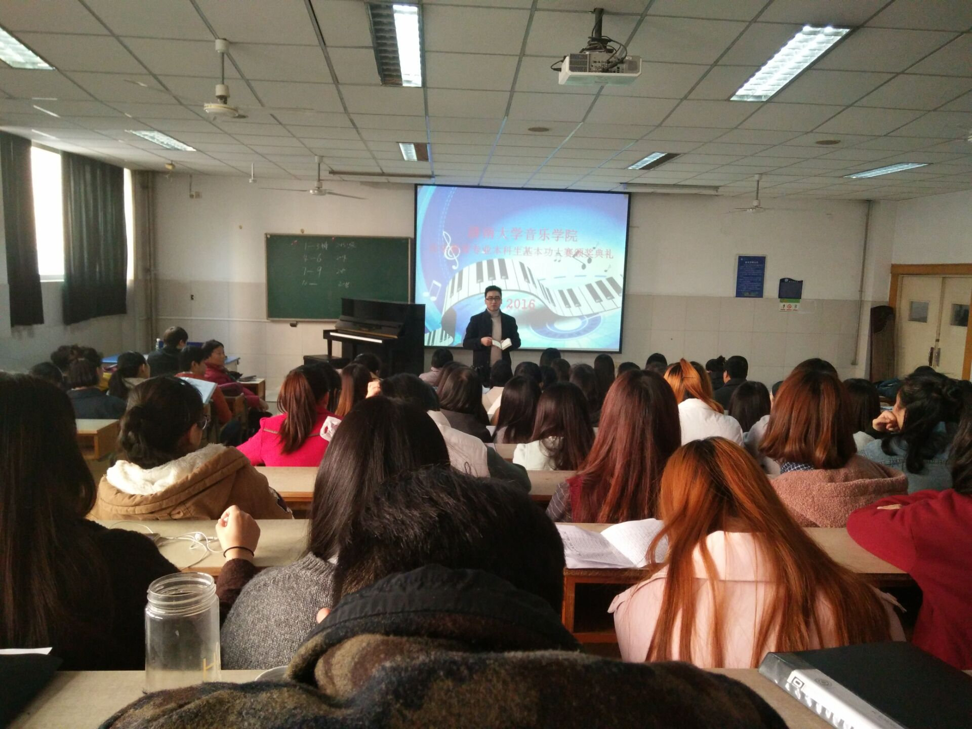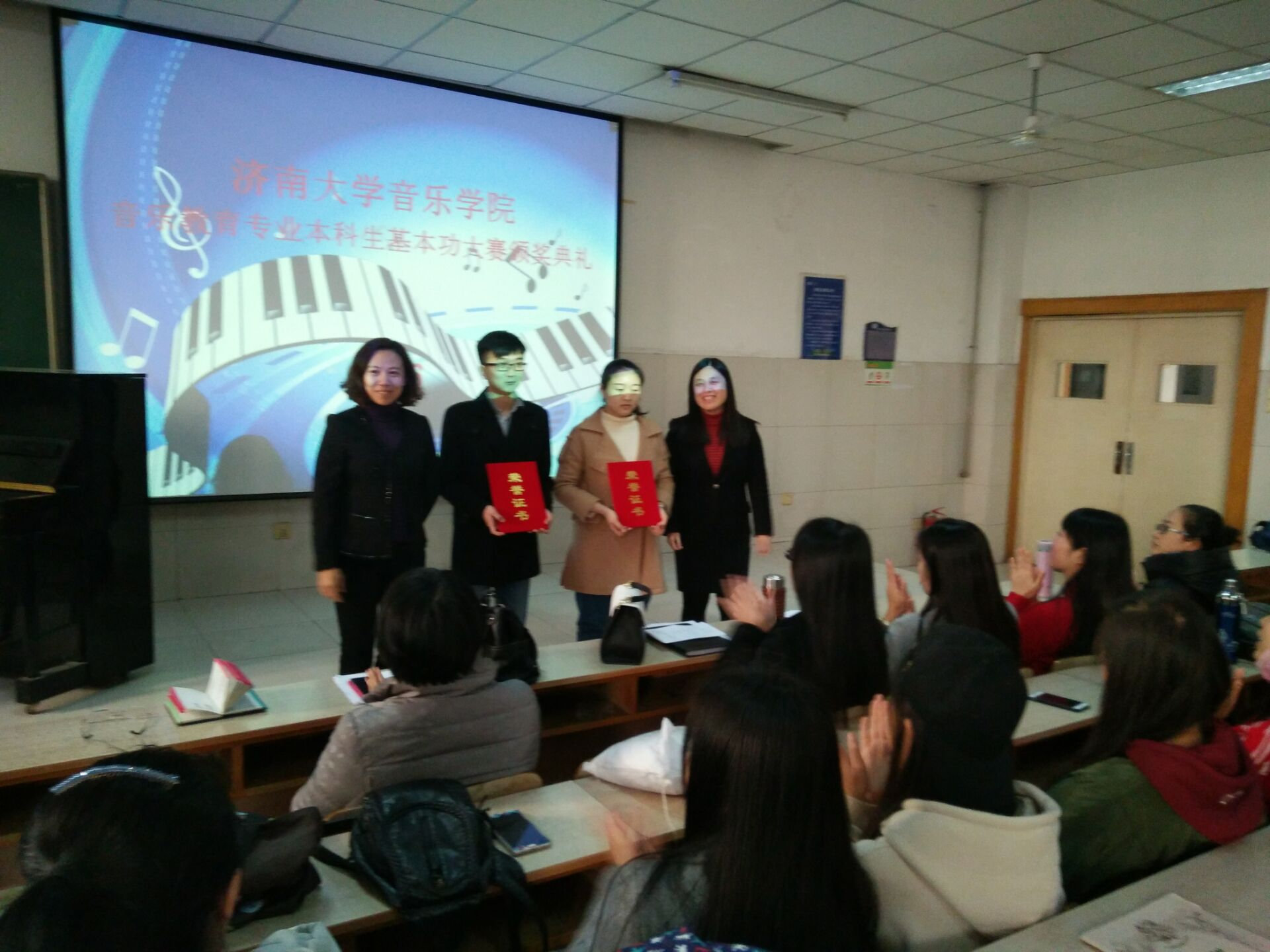 11月15日 太阳成集团tyc151cc音乐教育系全体师生在第二教室103举行了本次比赛的颁奖典礼活动。活动分为三个内容:为基本功比赛的成绩优异者颁发荣誉证书;专业教师对学生展示情况进行点评;进行成绩优异者的技能展演。