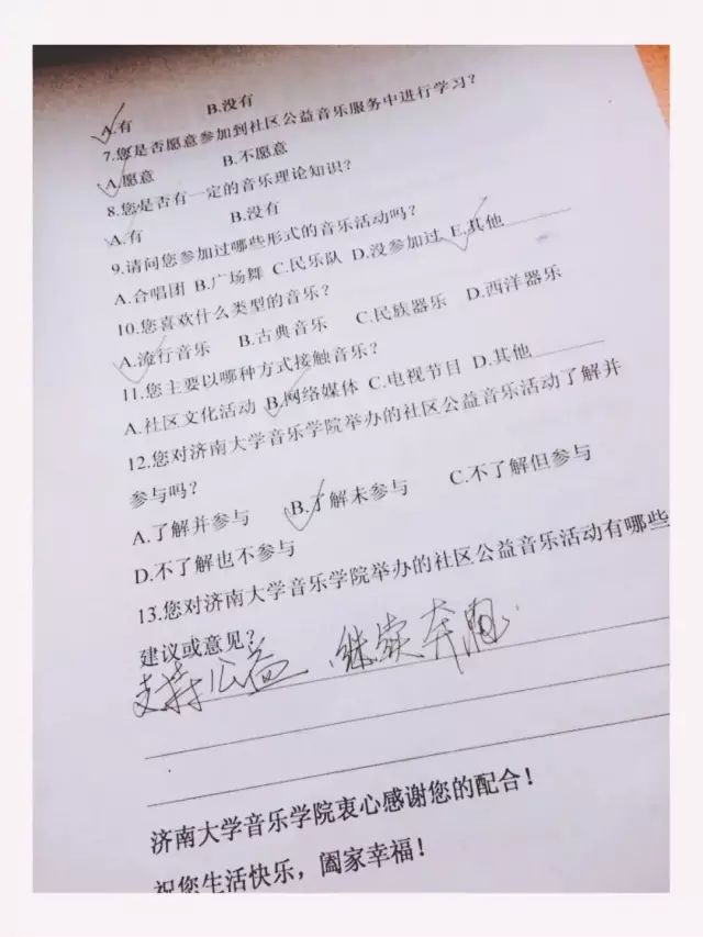 后来我们也找到方法了,我们感觉一个人能否合作基本上写在脸上:大爷、大叔一定要找慈祥的点的;大妈、阿姨最好不要惹;看起来受过高等教育的哥哥姐姐都可以;最配合的就是和我们差不多大的学生,拍照录视频都配合。最让我感动的是一个姐姐,得知我们是志愿者后,她和我们每个人击掌,给我们加油!还写道:“支持公益,继续奔跑!”瞬间心里暖暖的,感觉自己的正能量终于有了回应和互动!