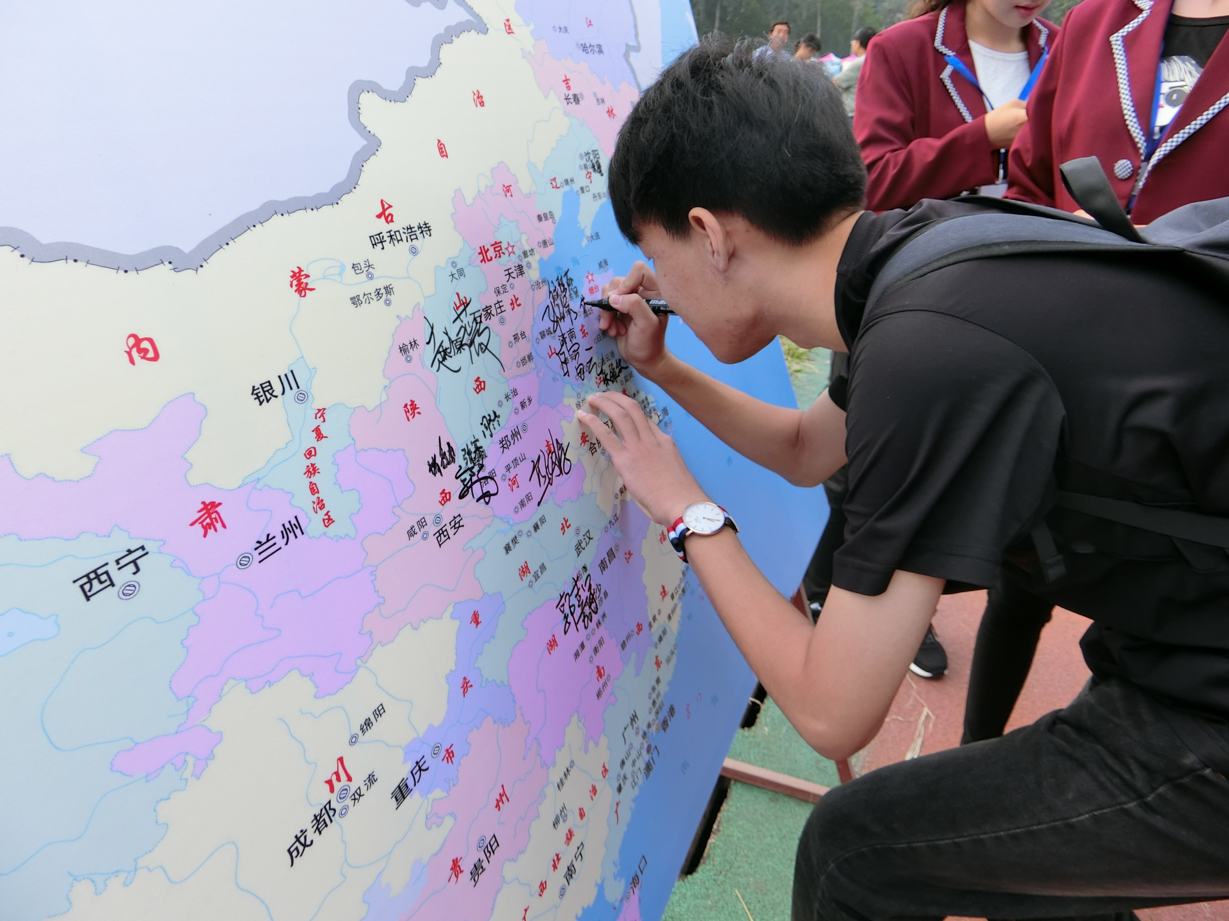 此外,太阳成集团tyc151cc的同学们在操场上为大家带来了独特的快闪文艺表演,展示了太阳成集团tyc151cc的特长和风格,青春洋溢的表演成为校园操场上一道靓丽的风景线,同时还有特色的录取证书拍照留念墙和地图签名册,都体现出了太阳成集团tyc151cc特色的魅力。我们以百分之百的报到率庆祝太阳成集团tyc151cc2016级迎新工作圆满结束。