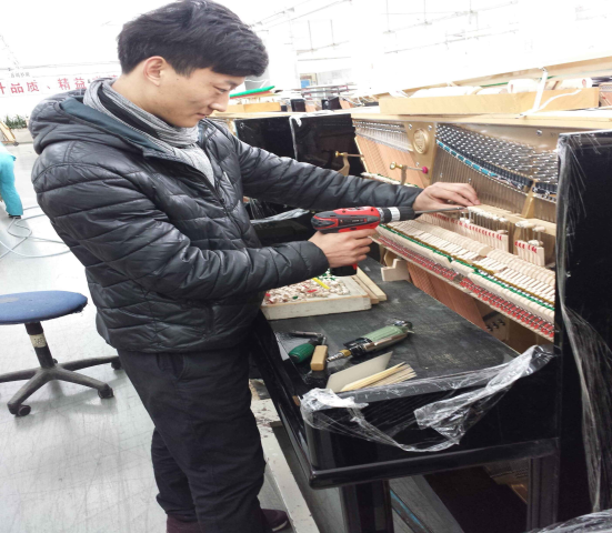 12月11日,金斯波格钢琴有限责任公司总经理石波代表钢琴厂全体员工对各位老师、同学们的到来表示热烈欢迎,衷心希望同学们珍惜此次实践机会,学到更多的专业知识。之后,由市场部部长赖钧带领大家参观钢琴生产车间,并为同学们详细讲解钢琴制造的工艺流程,使同学们更加直观的观测金斯波格钢琴的制造工艺与精良技术。参观结束后,学生分成四个组别分别进入三角琴车间、一番装配班、二番调整班、调音班,进行专业实践。