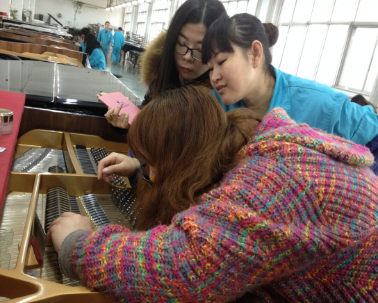 学生的兴趣与思考,经过几天的观摩与学习,学生都加入到钢琴装配工作中。通过在此环节的动手实践,学生对钢琴的结构与制造工艺流程有更加深入的了解和认识。