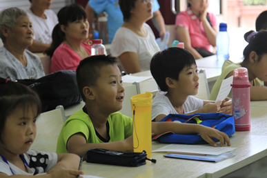 在近两小时的授课过程中,老师们从“声、情、字、味、表、演、唱”声乐艺术的七要素出发,进行了简单的发声训练,针对学员们的现场试唱,悉心指点他们的每一句演唱。课堂上同学们学习了简单的乐理知识和简单的识谱等功课。老师结合歌曲《静夜思》的演唱,就声乐艺术的理论方法与实践运用进行了详细的讲解,现场师生反响强烈。老师们用诙谐幽默的方法把这些知识教给了小朋友,鼓励他们独立演唱。老师还通过演唱示范,教给孩子们如何将演唱与情感表达完美结合等。通过老师们声情并茂的讲解,拉近了与同学们之间的距离,使孩子们领悟到了音乐的魅力以及歌唱艺术和多种技巧。