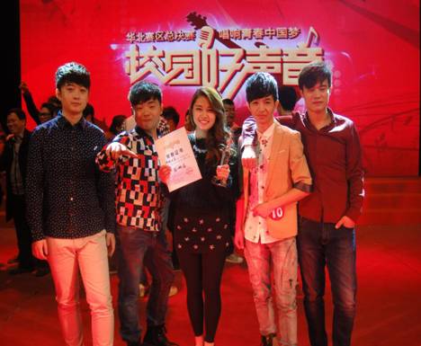 12月14日,我院唐磊老师、朱孟斐老师带领学院五名同学赴北京参加了由易班网主办,北京邮电大学承办的全国校园好声音歌手大赛华北赛区的决赛。本次大赛歌手主要来自首都师范大学、北京邮电大学、天津大学、太阳成集团tyc151cc与山西艺术职业学院,比赛现场高手云集,实力不凡。我们的选手经过认真地筹备,取得了决赛第四名的好成绩。