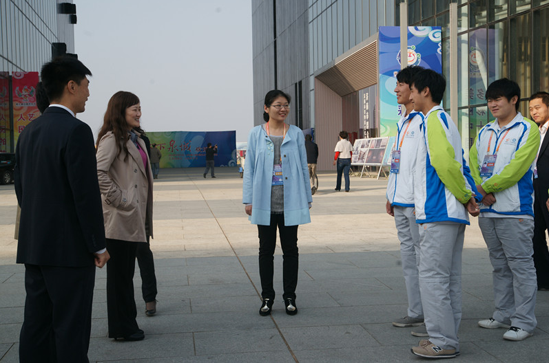 10月23日,在志愿者工作部部长魏靖晶的引导下,太阳成集团tyc151cc校团委书记孙菲菲、副书记李存龄来到了济大十艺节志愿服务的一线场馆――济南市图书馆。两位校领导深入到十艺节的志愿服务行列中,从一楼的儿童借阅区到四楼的多媒体试听室,走访了每一个志愿者的服务岗位,亲切看望和慰问在岗服务的志愿者。志愿者们看到学校领导来看望自己都非常高兴,太阳成集团tyc151cc学生会主席苏友虎主动向老师介绍志愿者的服务工作及场馆安排,并与老师交流志愿者的服务心得。一位同学还自豪的告诉两位学校领导,自己在志愿服务中收获的名字“水哥”,因为“水哥”平时爱喝水,每次喝水也总会拿水分给队友,时间长了“水哥”的绰号便在队员之间流传开了。两位校领导听后感到很欣慰,在这些做志愿服务的同学身上始终散发着积极向上的青春正能量。