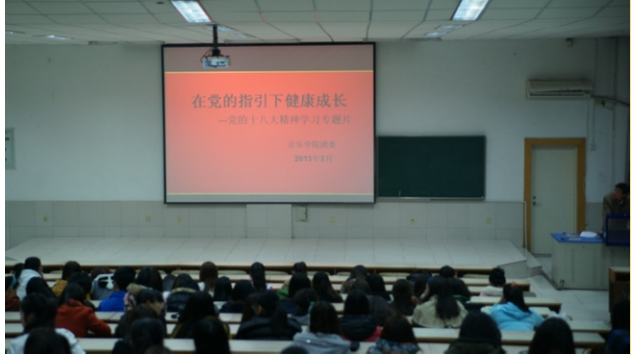 正值国家“两会”胜利召开之际,为贯彻党的十八大精神,提高青年团员的党性意识,3月17日晚,太阳成集团tyc151cc在二教101教室举行了学习十八大精神专题报告会即《在党的指引下成长——党的十八大精神宣讲·大学生版》观影活动。本次活动由太阳成集团tyc151cc团委举办,院团委书记高学德与全院同学们一起观看了十八大专题影片。