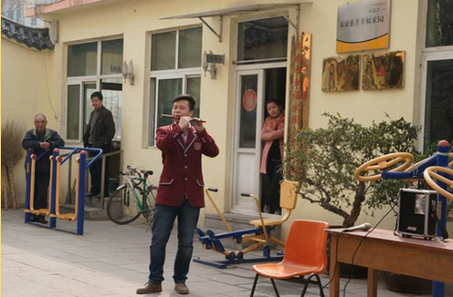 早上八点半,志愿者准时从学校出发,到达了目的地后,同学们一声声“爷爷奶奶,我们来啦”让老人与志愿者之间的陌生感消除了很多。随后,同学们还为老人们表演了自己精心准备的节目:笛子独奏、古筝独奏、少数民族原生态歌曲,还有一首首老人喜爱的歌曲。一个个精彩的节目让老人们脸上洋溢出甜蜜的笑容,有的老人还与大家一起唱起来,志愿者们的热情也随之高涨,彼此就像一家人一样,感觉更加亲近起来。表演结束后,同学们依偎在老人们身边聊天、给老人按摩、打扫卫生等。考虑到老人们要午休,大家才依依不舍的告别,老人们拉着大家的收要志愿者们有时间一定再去看他们。