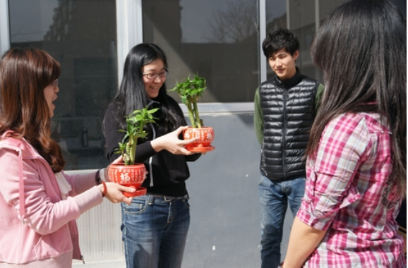 3月8日上午,院学生会主席团代表学院全体学生手拿朝气蓬勃的绿色盆栽,微笑着走向学院女老师的办公室。“鲜花虽然好看,但是很容易凋谢。而盆栽生长时间长,老师用眼疲劳时,可以看看绿色植物缓解疲劳,心情也会变得愉悦。另外,绿色植物还能净化空气。生命力旺盛的盆栽也喻示着同学们祝愿女老师们事业长青、生活幸福。”一位同学细数盆栽的好处。在春天到来之际提前给老师们送上一份浓浓的绿意。