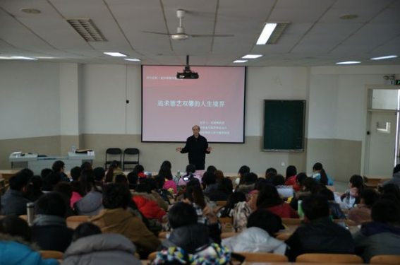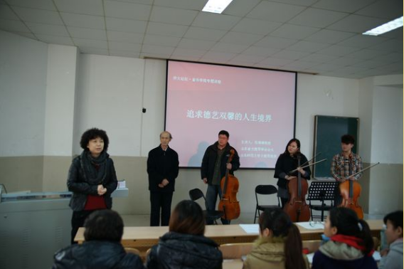 12月13日上午,太阳成集团tyc151cc邀请山东省大提琴协会会长,山东师范大学张增锡教授在11教学楼六段102教室为太阳成集团tyc151cc全体师生作了“追求德艺双馨的人生境界”的专题讲座。