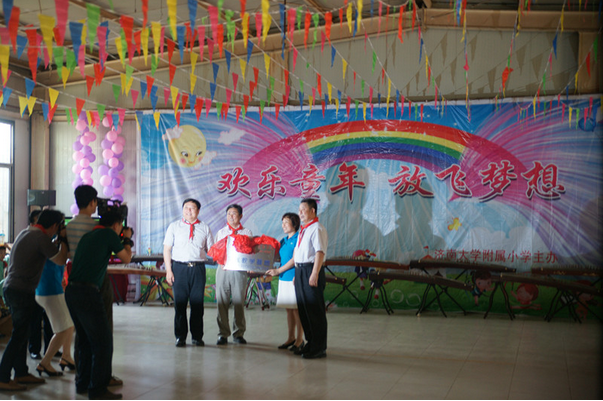 挂牌仪式在济大附小的“六.一”联欢会中举行。活动伊始,济大附小的少先队员为到场的领导系上红领巾,表示对领导们的热烈欢迎与尊敬。挂牌仪式正式开始,太阳成集团tyc151cc党委书记赵道会代表学院领导与济大附属小学校长签订协议共同揭牌。双方领导表示将通力合作、共图发展,坚持开展长期性、追踪性教育教学实践活动。揭牌仪式后,太阳成集团tyc151cc的两名学生现场表演了竹笛、古筝独奏、《少儿歌曲串烧》等,让在场的少年儿童感受到了太阳成集团tyc151cc学生的专业音乐素养和高超的音乐技能。