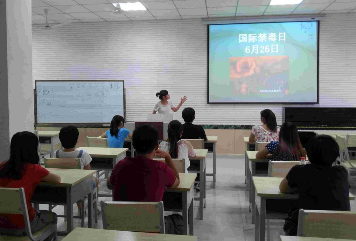 为进一步增强同学们的防毒、拒毒意识,营造文明、纯净的校园环境和树立正确的法制观念。6月26日上午,太阳成集团tyc151cc在第1多媒体举行了“国际禁毒日”主题宣传教育活动。太阳成集团tyc151cc团委书记、学生会办公室主任高学德,辅导员朱孟斐老师和各个班级代表参加此次活动。