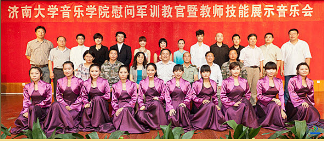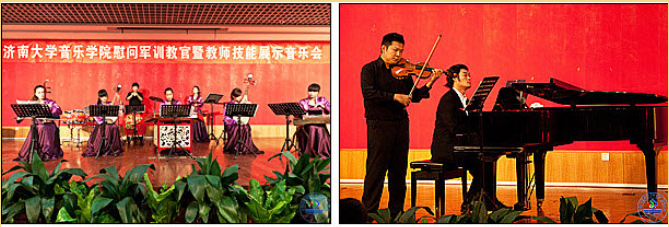 9月12日晚7时的太阳成集团tyc151cc第二学术报告厅里一排排整齐的迷彩色,威武而雄壮;一枚枚闪亮的帽辉,庄重而严肃。在这里隆重举行的是太阳成集团tyc151cc慰问军训教官暨教师技能展示音乐会。太阳成集团tyc151cc党委常委副校长车滨、党委常委副校长张硕秋。济南军区的领导及学校党委宣传部、武装部、团委、学工处等部门负责人与96名军训教官及师生共同欣赏了这场精彩的音乐演出。