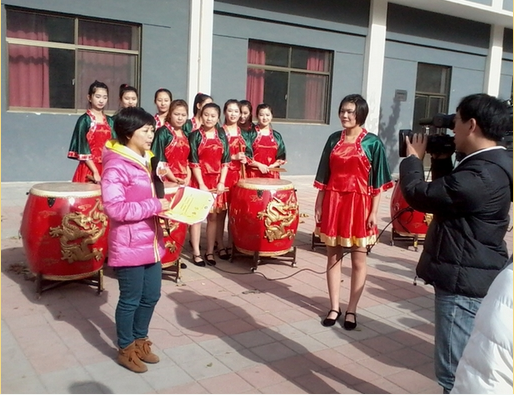 拍摄组来到学院后,参观了学院的宣传栏、排练室,随后进行了《中国龙》的拍摄工作。铿锵的鼓点,敲出了磅礴气势,演员激扬动感的表演把《中国龙》演绎的淋漓尽致。表演结束,主持人对鼓乐队队员进行了专门采访,对同学们不畏严寒精彩的表演表示由衷的感动。同学们则表示虽然排练和演出比较辛苦,但作为音乐表演者,舞台就是自己的天地,技艺就是立身之本,以后还会严格要求自己使专业技能和舞台表演得到进一步提高。最后,节目组为鼓乐队颁发了“鼓舞泉城”活动的荣誉证书。