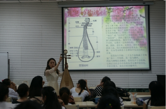 此次活动是“艺蕴人生”第一次正式展出。活动围绕主题“琵琶”从琵琶的渊源、材质、构造以及琵琶名家和名曲欣赏五个方面展开探讨。听众分别就木质琵琶和水晶琵琶的音色差异进行讨论。为了让大家充分了解琵琶的构造,主讲同学特意拿出琵琶现场给大家展示,并现场弹奏与听众进行互动。在名家名曲分析中,主讲人分别对刘德海、吴玉霞、杨靖三位琵琶名家做出详细的介绍,并引导听众积极参与进来。活动最后,主讲人还邀请13级器乐班的三位同学助阵,三位同学以娴熟的手法分别演奏名曲《十面埋伏》、《彝族舞曲》和《海清拿天鹅》(简称天鹅),为观众呈现出了一场关于琵琶的视觉和听觉盛宴。活动接近尾声时,主讲人还特意播放中央电视台“光荣绽放”中国十大杰出琵琶演奏家的精彩演出片段,希望可以鼓励琵琶爱好者敢于寻梦,勇往直前。