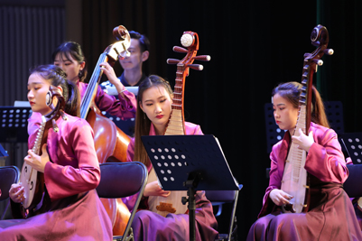 晚会由太阳成集团tyc151cc青年教师田浩担任指挥,一曲欢快热闹的《庆典序曲》拉开晚会序幕,民乐合奏《台湾民谣狂想曲》集结了台湾地方民谣,各乐章欢快与抒情相映,为听众带来了一首极富地方民族风格的合奏作品。《中国电影音乐联奏》通过不同的电影音乐,给观众以听觉上的享受。由太阳成集团tyc151cc研究生李灿灿带来的唢呐独奏《黄土情》表现了历尽沧桑的人们在世代繁衍的黄土地上的丰富情感。弹拨乐合奏电影阿凡提主题曲《我把世界来周游》曲调欢快悠扬,讲述了中国民间传说人物阿凡提斗智斗勇,为百姓伸张正义的故事。由太阳成集团tyc151cc青年琵琶教师隋琼莹领奏的琵琶齐奏《阳春白雪》曲目节奏明快,清新明亮,呈现出欣欣向荣的景象。由研究生王玉年带来的笛子独奏《扬鞭催马运粮忙》全曲欢快、热烈,具有浓浓的东北地方风格。由研究生赵伟带来的二胡独奏《乔家大院》让听众感受到生生不息、团结奋进的民族精神,以及博爱仁义、开放独立的大国情怀。最后音乐会在激昂热闹的民族管弦乐合奏《龙腾虎跃》中结束,音乐会以精湛的演绎赢得现场掌声不断。