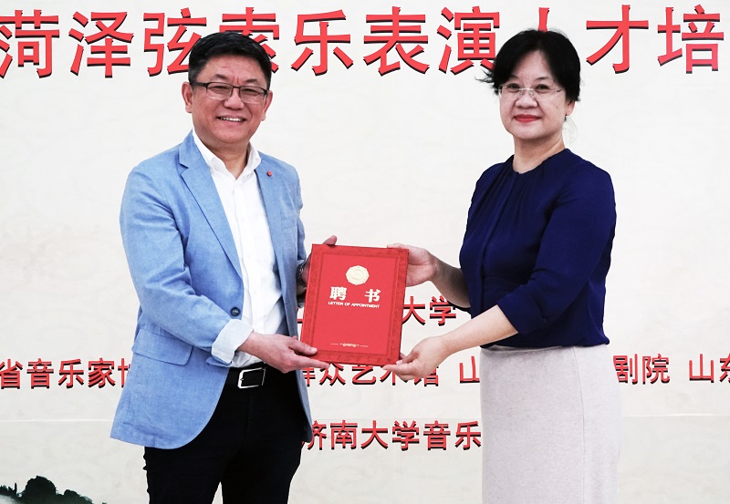 6月10日下午,山东省文化和旅游厅党组成员,副厅长、研究馆员、山东省音乐家协会名誉主席张桂林客座教授聘任仪式在我校举行,太阳成集团tyc151cc李光红副校长为其颁发聘书。