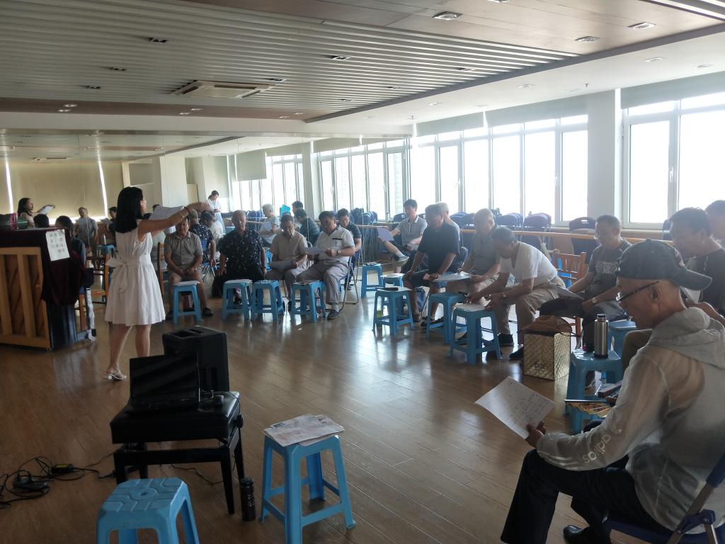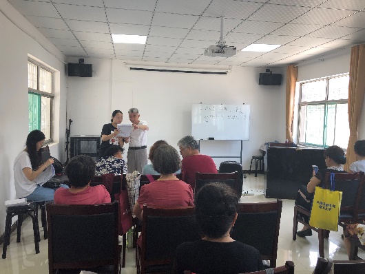 今天有五节课程,所有课程进行最后的总结和扫尾,段北社区的阿姨们要今晚进行演出比赛,阿姨们穿着自己的演出服给志愿老师展示,希望老师对自己的合唱、动作和队形进行最后指导。营市街3502合唱团也是将合唱曲子《四渡赤水出奇兵》、《我和我的祖国》进行细节处理,将男声、女声声部合起来进行综合处理,进一步的处理节奏、强弱、气息的问题。舜城苑的舞蹈队曲目完成度非常高,阿姨们对志愿老师也是非常的满意,每次都会夸老师很有耐心,得知我们志愿者是带病来教课,阿姨们说自己都心疼,非常感谢太阳成集团tyc151cc提供的这个课程,希望以后还能够合作,并且希望下一年还可以是杨腾远去教课,可见阿姨们对志愿老师的喜欢。最后一节课真正结束了,叔叔阿姨们看着志愿者老师们眼神里露出不舍,有的阿姨还要和老师合照,实践团的老师们也纷纷表示,很不舍得叔叔阿姨们,虽然他们的专业基础不高,但是他们对艺术的热爱和坚持不懈的精神都是志愿者应该学习的。