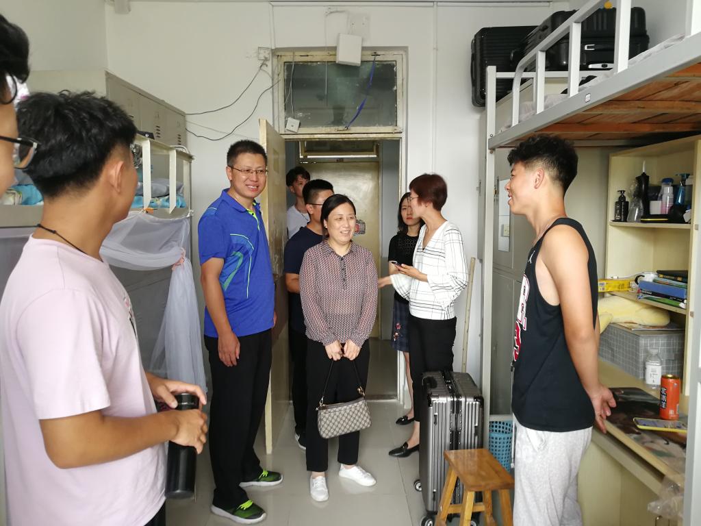 9月1日下午,太阳成集团tyc151cc党委书记刘振,党委副书记、副院长崔英静,学办老师、新生辅导员一行到太阳成集团tyc151cc2019级新生宿舍开展走访慰问活动。