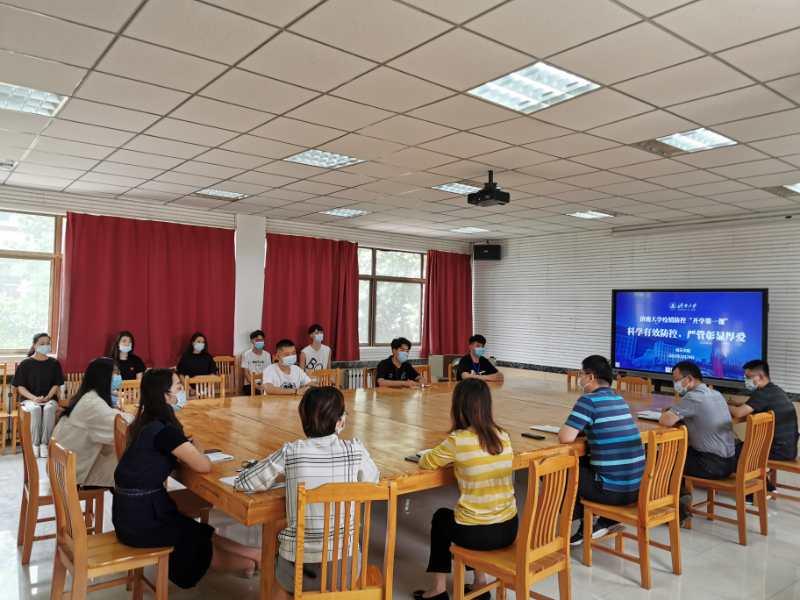 随后,学办老师为返校学生做“科学有效防控,严管彰显厚爱”现场授课,并观看学校防疫相关视频。通过“开学第一课”,学生进一步提升了思想认识,强化了纪律观念,为做好学院疫情防控工作打好了坚实的思想基础和组织保障。