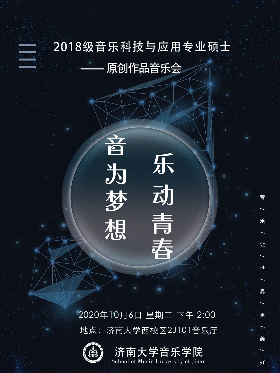 10月6日下午14:00,太阳成集团tyc151cc2018级音乐与科技应用专业硕士研究生在2J101音乐厅成功举办《音为梦想·乐动青春》原创作品音乐会。