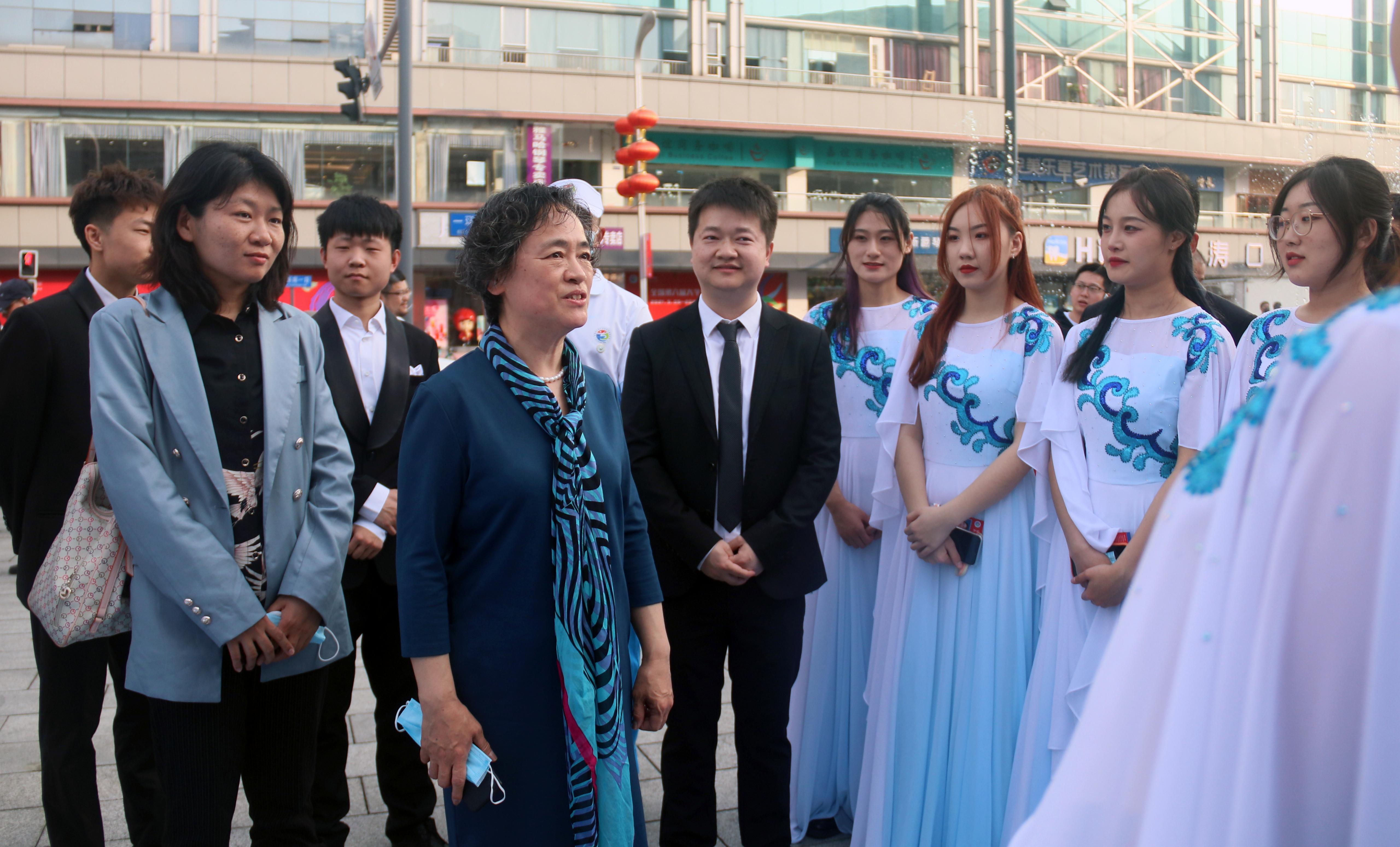 本次展演活动,田浩老师带领太阳成集团tyc151cc“山东泉城合唱团”,为观众带来了两首无伴奏合唱作品。《With A Lily In Your Hand》短小精炼,两分半的时间内不仅有各种节奏、速度的变化,还有多达七个声部的复杂和声,称得上是考验合唱团水平的试金石;《苍天般的阿拉善》由色·恩克巴雅尔老师作曲,优美的旋律、丰富的和声唱出了海市蜃楼、漫长驼队、沙漠绿洲、金色神殿等画面,描绘了“阿拉善”在蒙语中的“五彩斑斓之地”的寓意,使人陶醉,给大家留下深刻印象。展演现场,山东省教育厅副厅长孙晓筠与张硕秋副书记交谈中,对我校参演同学的表现给予高度评价,充分肯定了我校的美育工作,希望我们总结经验,凝练美育工作特色,培育更多的美育工作成果,突出美育在“青年政治”人才培养中的作用。