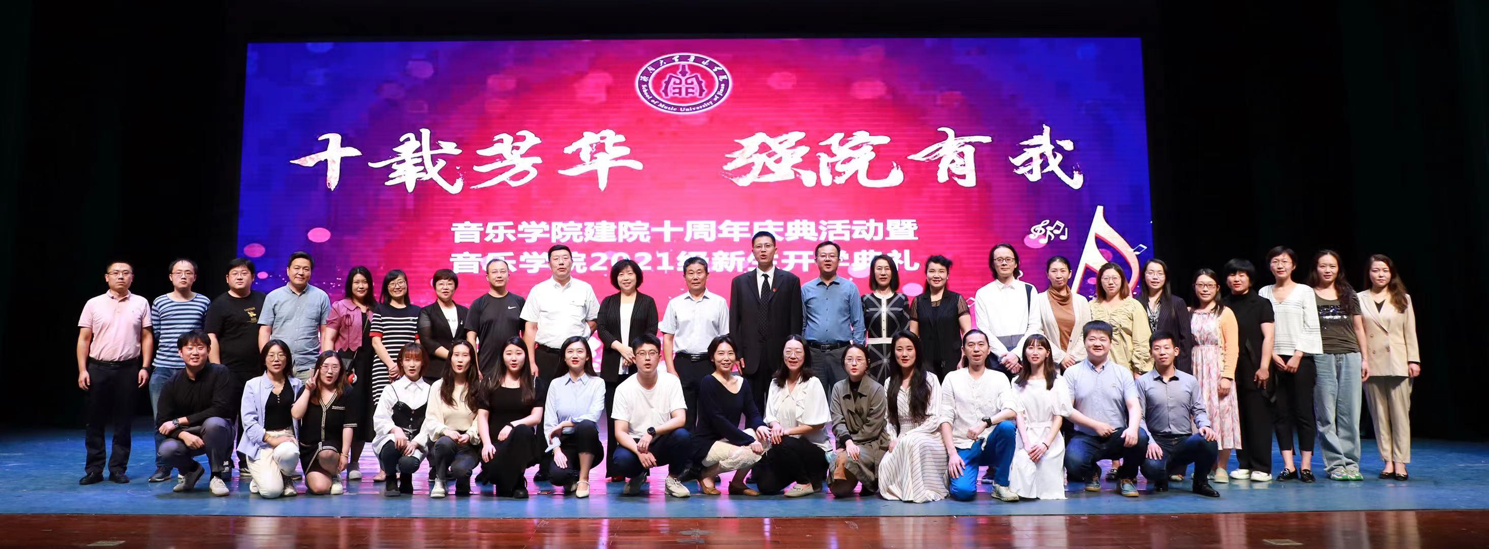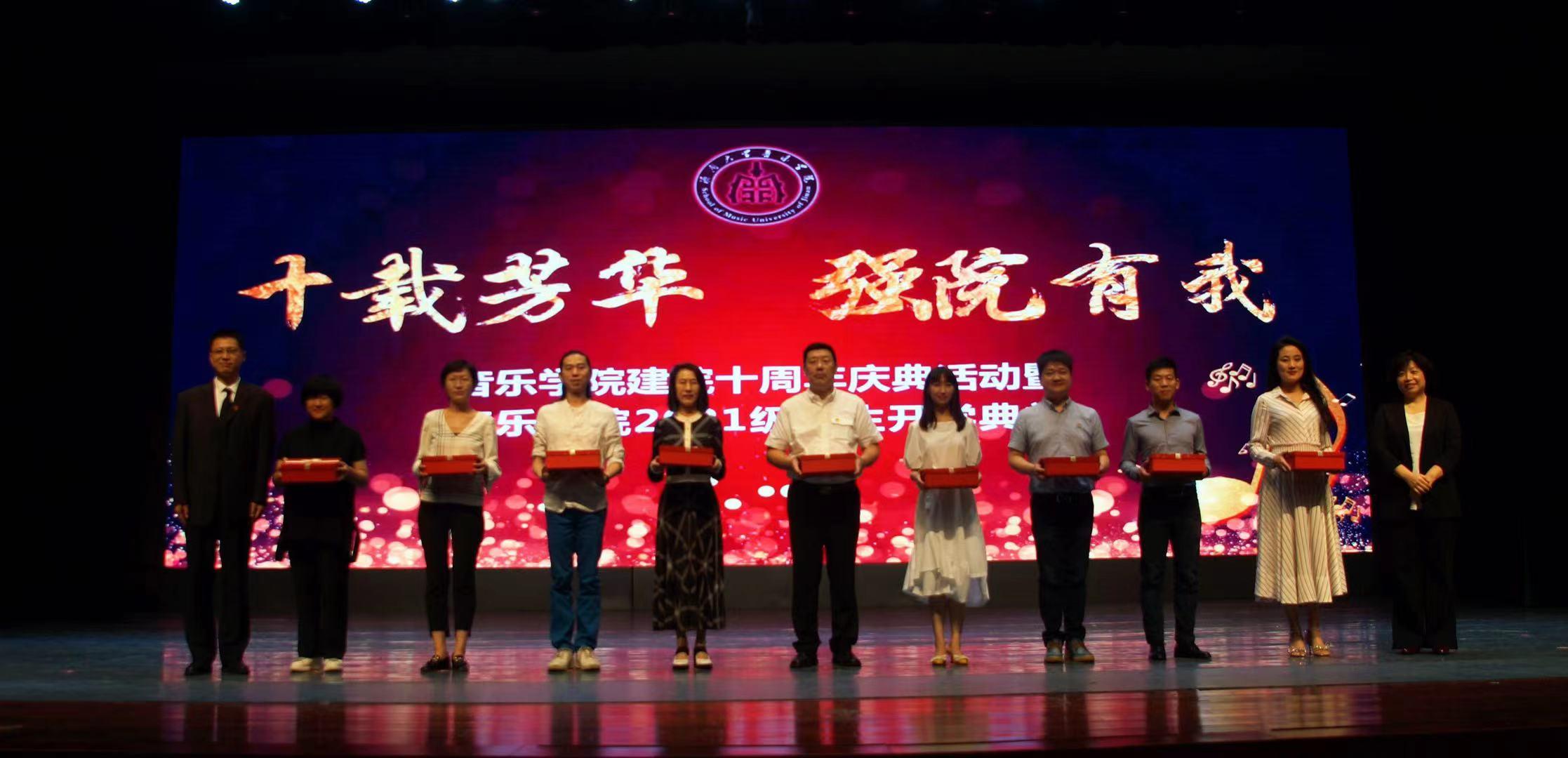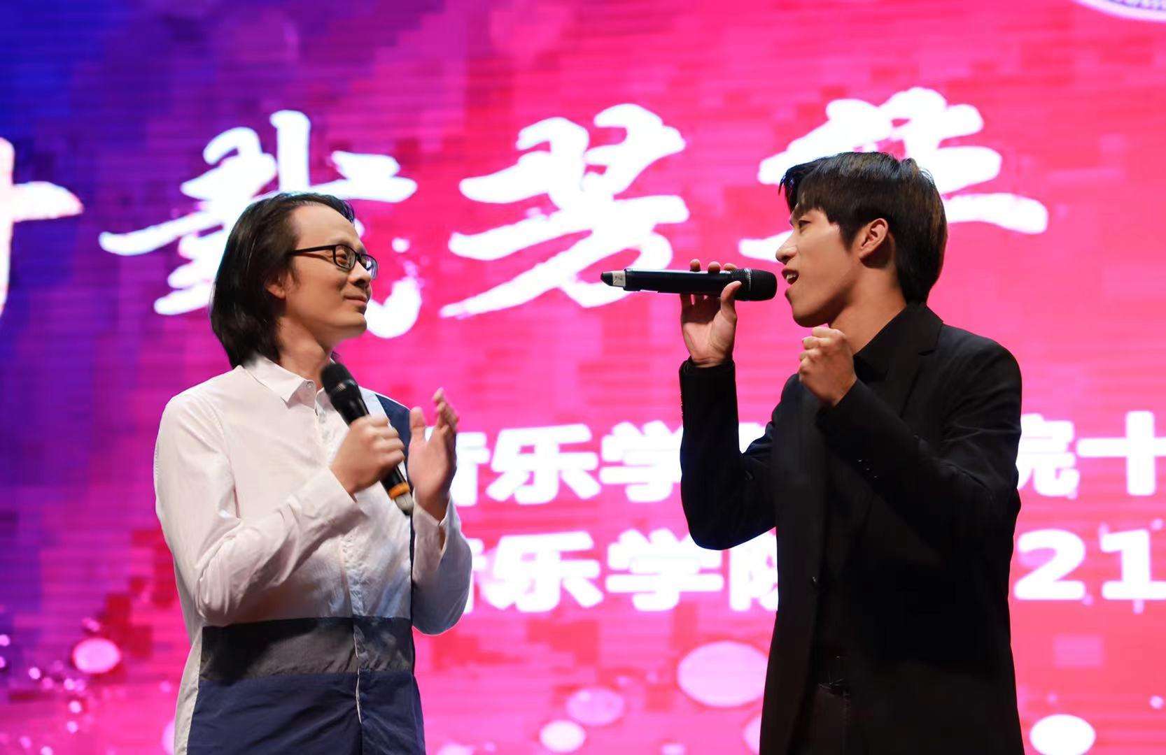 现代音乐系主任唐磊老师专门为纪念学院建院十周年创作了歌曲《爱拼的青春》,并在典礼现场以演唱形式举行了歌曲首发式。