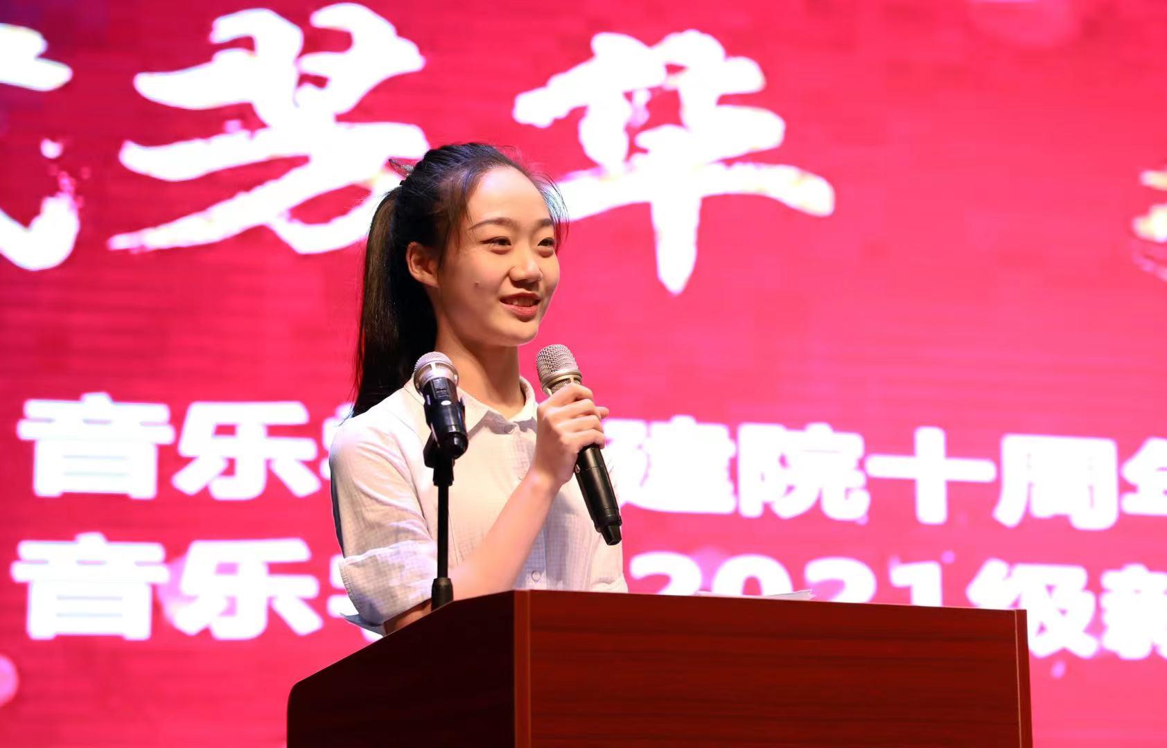 音理2101班米雅文同学与大家分享了作为新生初识济大、初识太阳成集团tyc151cc的兴奋与喜悦。在太阳成集团tyc151cc建院十周年之际,面对新环境和新起点,她代表2021级全体同学向学院做出庄严承诺,秉承“弘毅、博学、求真、至善”的校训和“音和乐谐、德艺双馨”的院训,在四年的大学生活中立德修身,求知学艺,遵章守纪,不断自我塑造、自我提升、自我成就,让人生变得更加精彩。