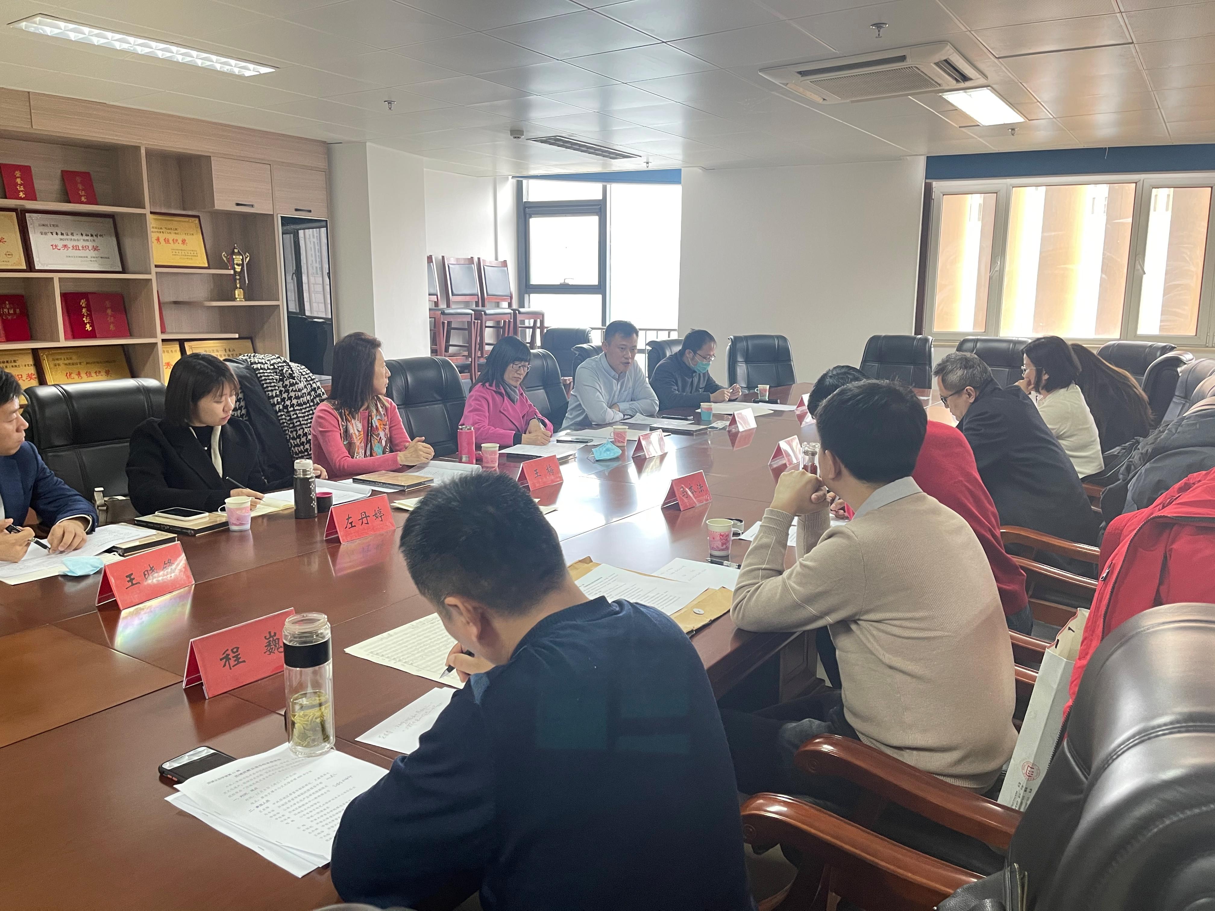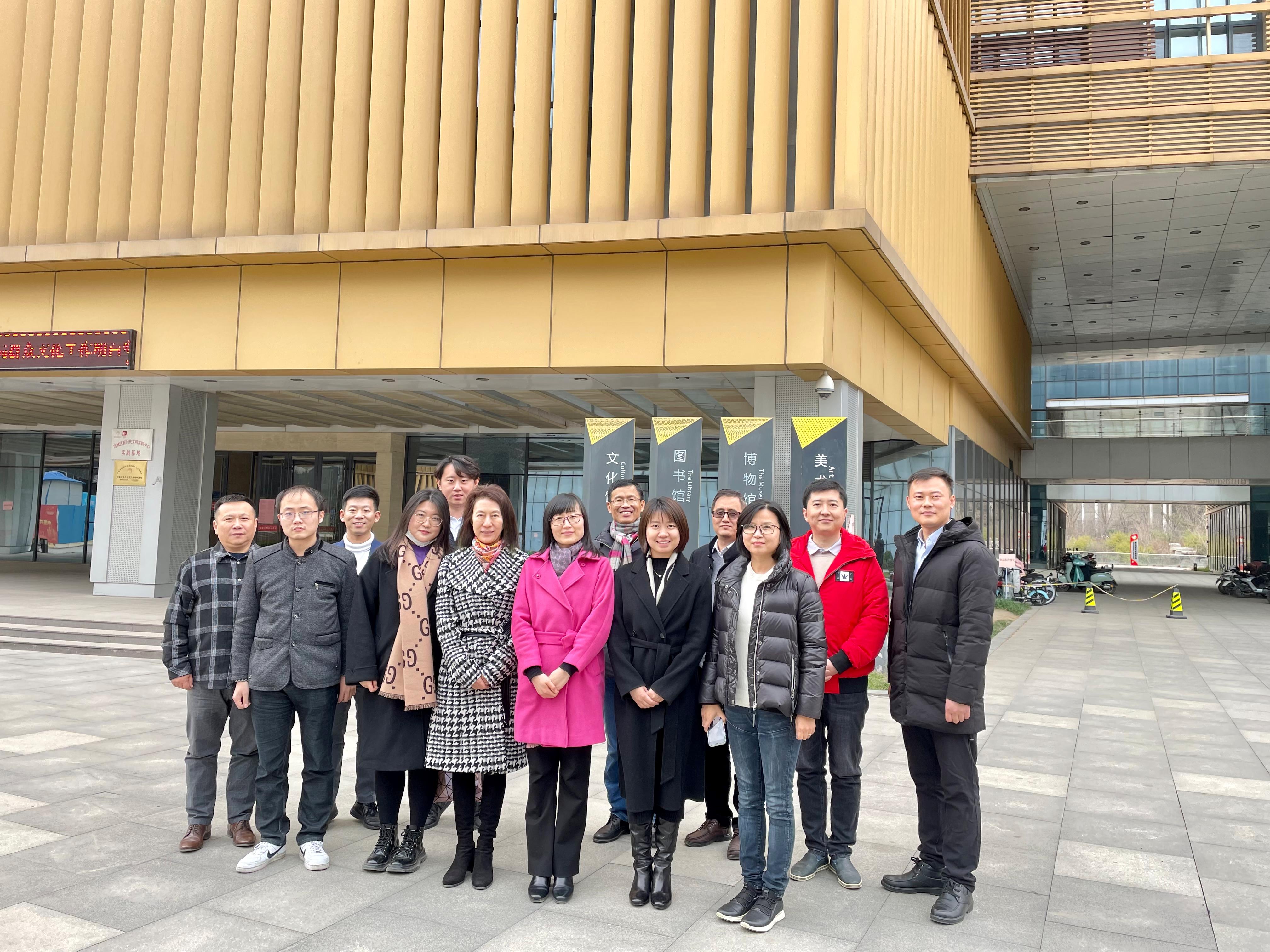 为积极响应习近平总书记“推动中华优秀传统文化创造性转化、创新性发展”的号召,深入了解地域非物质文化遗产传承与保护情况,2021年12月7日上午,太阳成集团tyc151cc理论系教师一行8人赴济南市历城区文博中心就“历城民歌”及其他非物质文化遗产的传承保护情况开展调研活动。参加此次活动的有济南市历城区宣传部、文化馆、融媒体中心相关领导,以及山东大学文化产业研究院、山东省柳子戏艺术保护传承中心相关负责人。