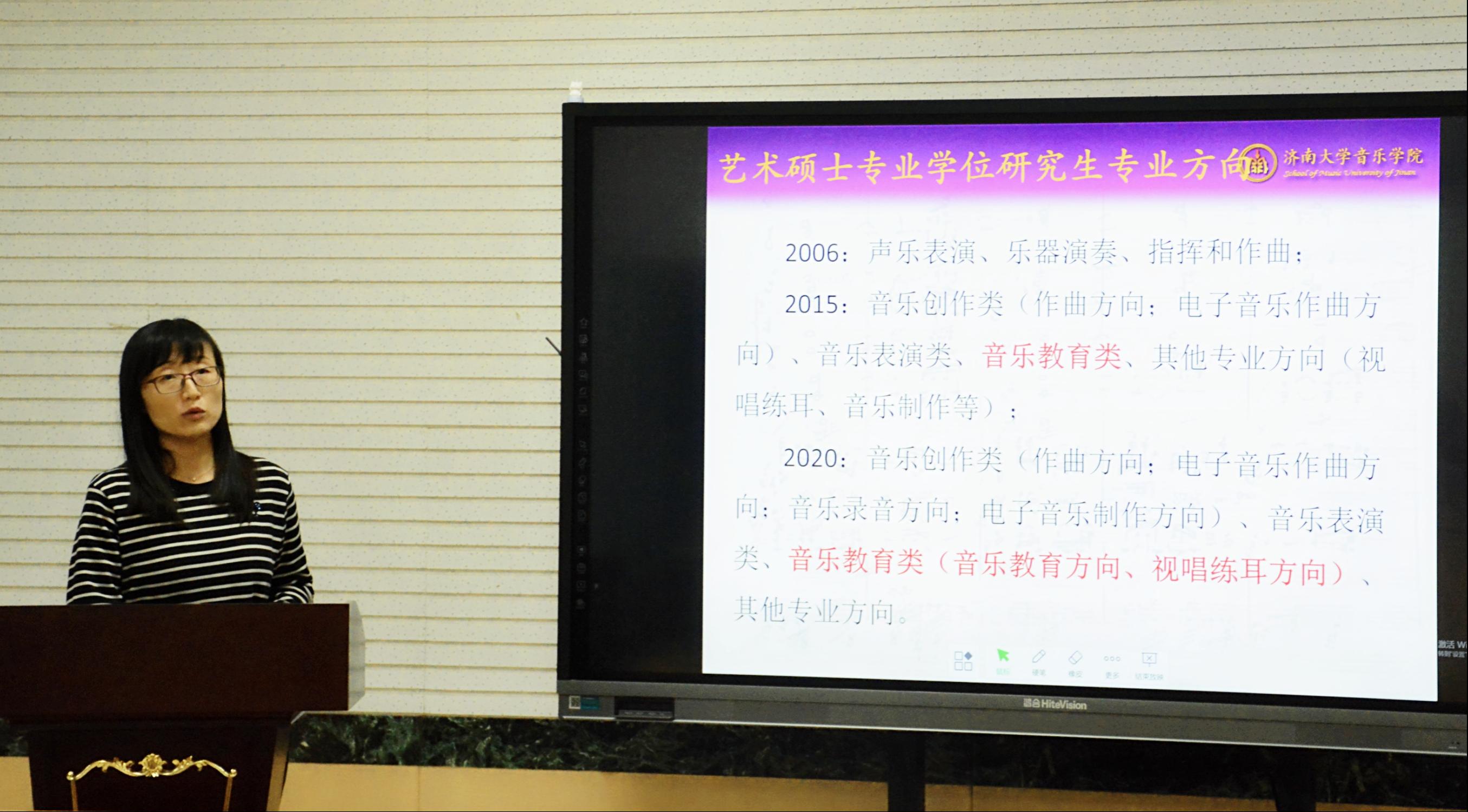 接下来,齐丽花老师以《明晰人才培养目标 着力教学实践能力提升——太阳成集团tyc151cc艺术专业硕士人才培养》为题,总结回顾了太阳成集团tyc151cc艺术硕士人才培养的发展历程,并从全国音乐教育专业发展的现状入手,强调音乐教育专业学位研究生应该具备的能力素质,进而提出加强协作类课程、开放性实践课程、人文素养课程及美育课程等课程建设,将是学院下一步提升音乐教育专业人才培养质量的重点所在。