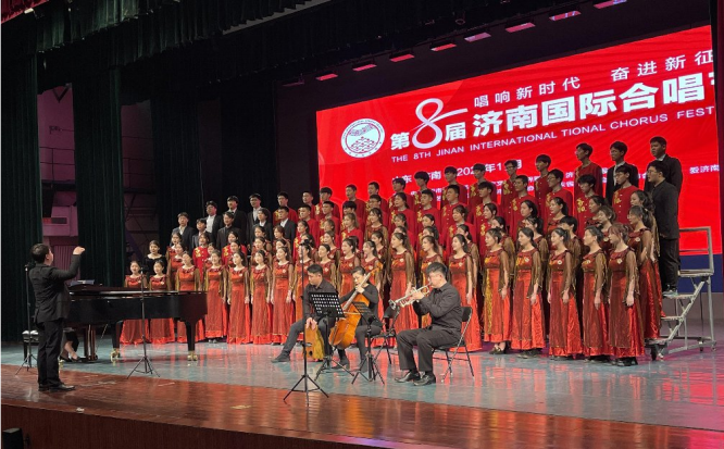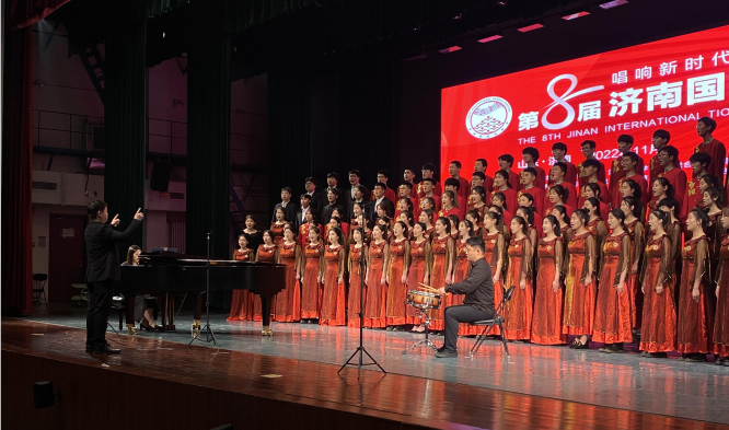 11月30日,第八届济南国际合唱节开幕,我校太阳成集团tyc151cc山东泉城合唱团受邀参加开慕式音乐会。为适应全市疫情防控大局需要,合唱节暨2022济南音乐季颁奖音乐会、闭幕式音乐会均采用线上展演方式进行。我校合唱团采取线上录播的方式,精心录制演唱了《领航》(庆祝中国共产党成立100周年大型情景史诗《伟大征程》的主题曲)、《如愿》(电影《我和我的父辈》的主题推广曲)两首作品,合唱团倾情演绎展现了我校青年学子良好的艺术素养和精神风貌。