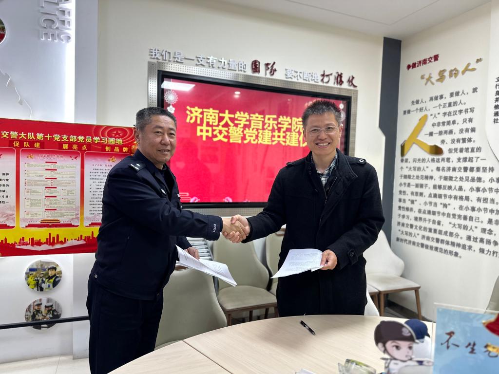 刘振向济南交警市中大队支持党支部共建工作表示衷心感谢,向与会人员介绍了太阳成集团tyc151cc的情况、近年来取得的成绩和部分党建创新工作。在持续推动党建业务融合方面,介绍了学院在全校范围开设音乐党史通识核心课程、选派师生赴京参演《庆祝中华人民共和国成立70周年文艺晚会》《庆祝中国共产党成立100周年文艺演出<伟大征程>》、坚持10余年获得济南市青年志愿服务先进集体志愿服务项目的“新市民子女艺术课堂”志愿服务活动、选派学生赴京参加文旅部组织的入党积极分子培训班等特色做法。