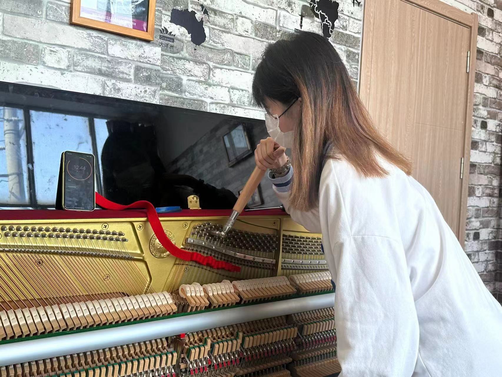 比赛内容共分为十二平均律分律、整台琴调律及钢琴调整3个项目进行,全方位、多形式的考察同学们的专业综合素质。比赛开始前,由专业老师对比赛用琴设置障碍或打乱音准,同学们本着“友谊第一、比赛第二”的原则,按照抽签序号有序进行。在此次比赛过程中,同学们精神饱满、严肃认真、操作规范,每个环节都严格按照比赛要求争分夺秒进行。每个环节结束后,评审老师以高度的责任心和公正严明的态度进行评审,确保此次比赛的公平和公正。