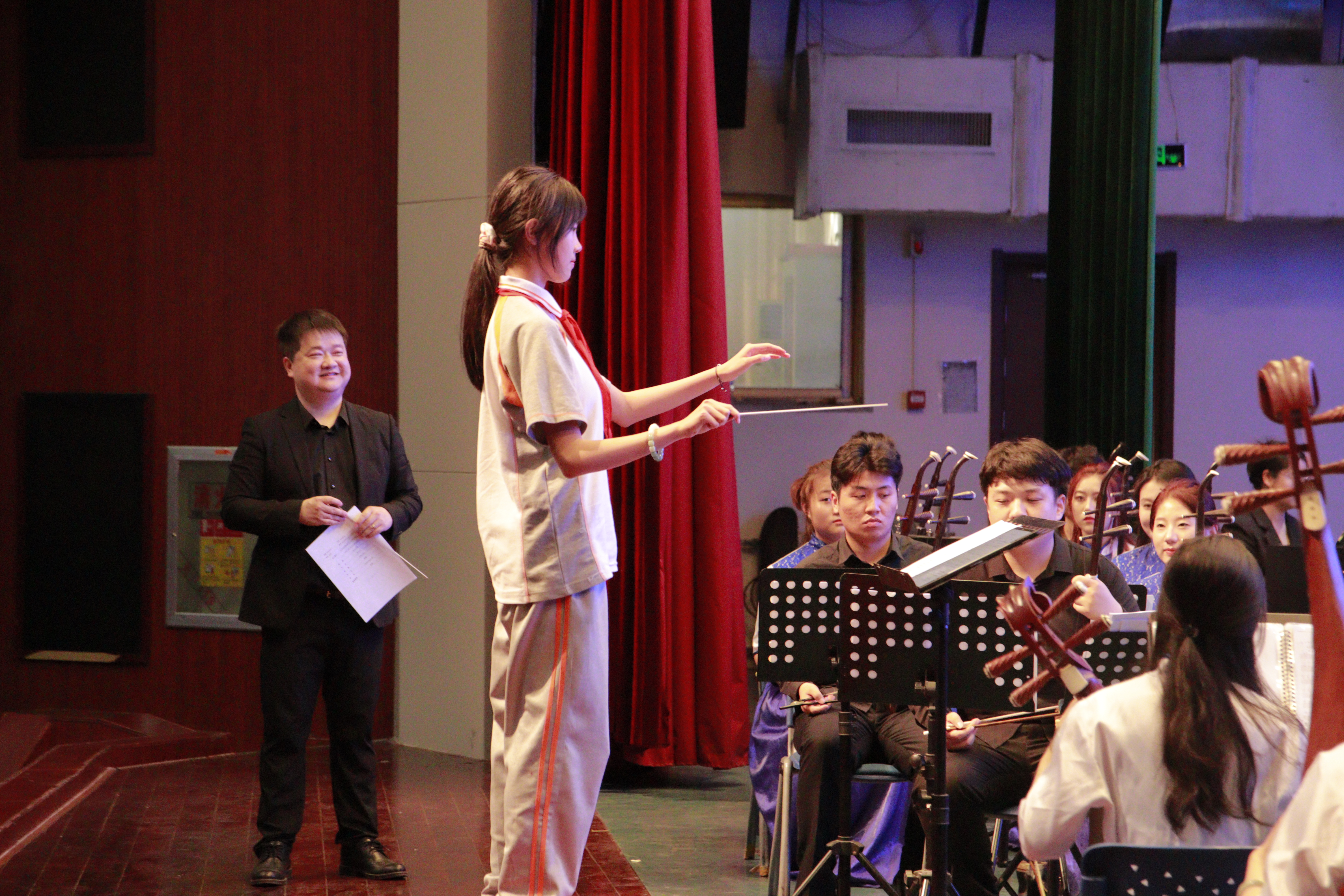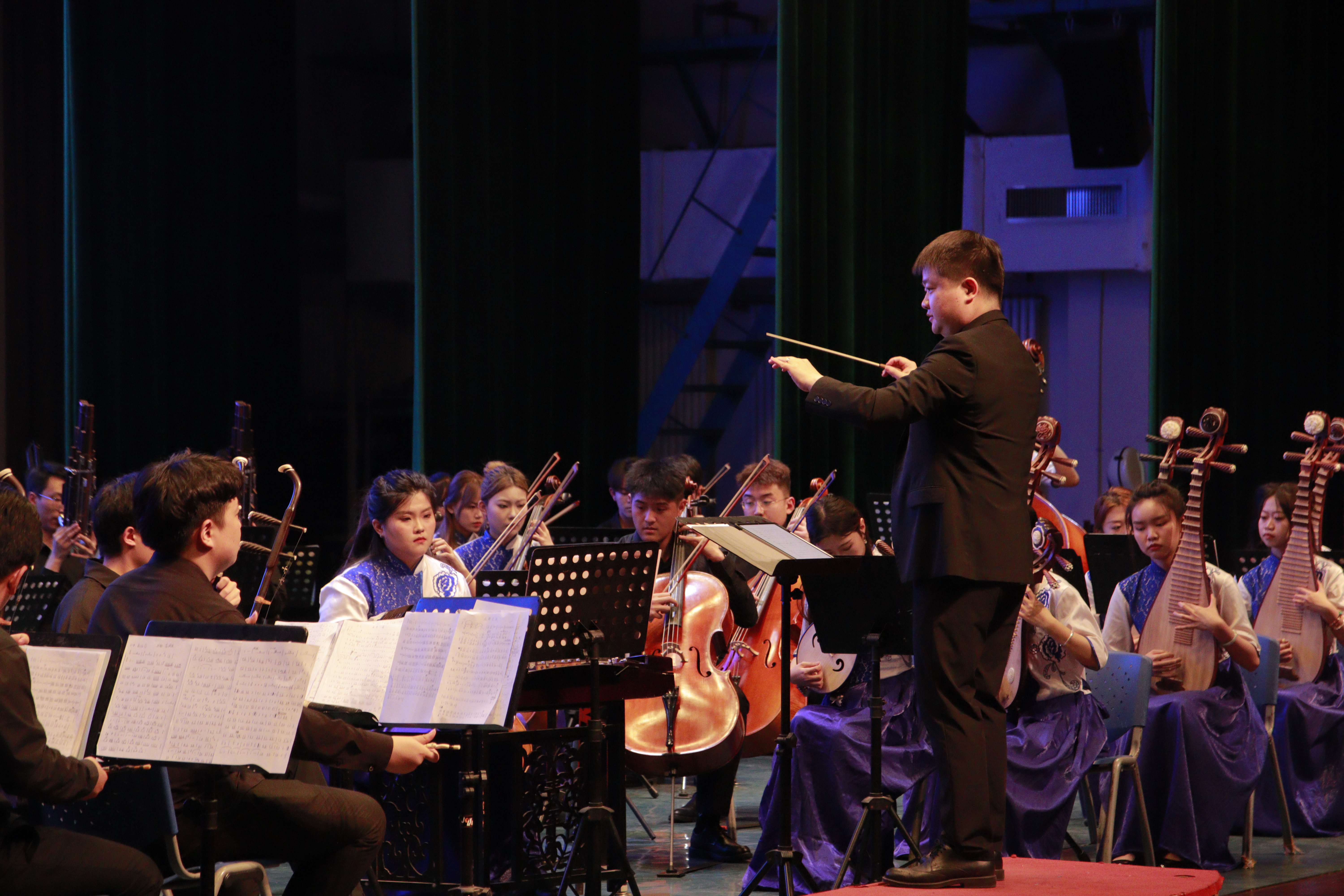 太阳成集团tyc151cc青年教师田浩担任此次音乐会指挥,以寓教于乐的形式介绍中国传统器乐及作品,让中小学生更多的了解民族管弦乐队不同声部的乐器,用舞台互动激发了学生对民族乐器学习的热情,让艺术与文化融入学生的生活,弘扬中华文化经典底蕴。