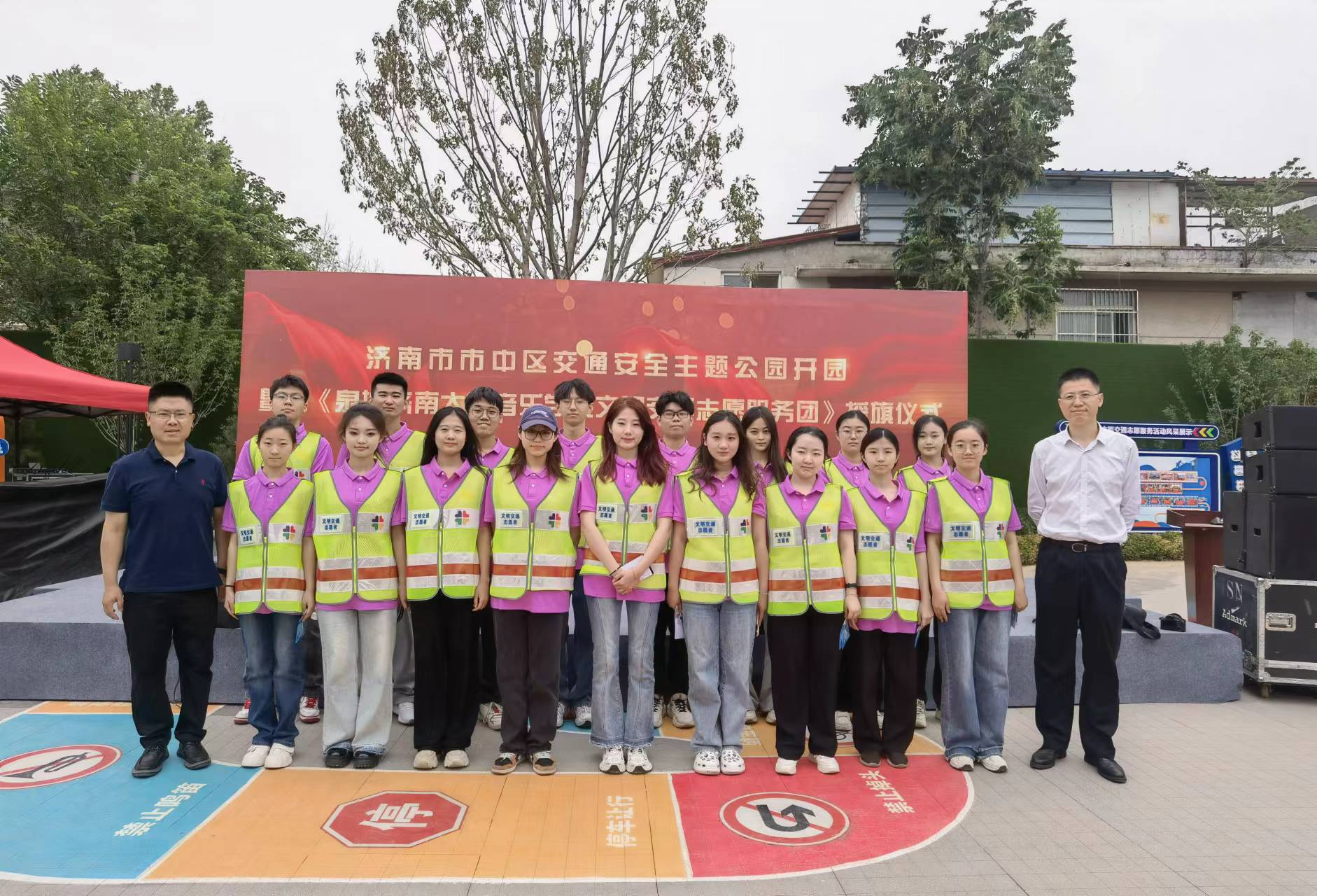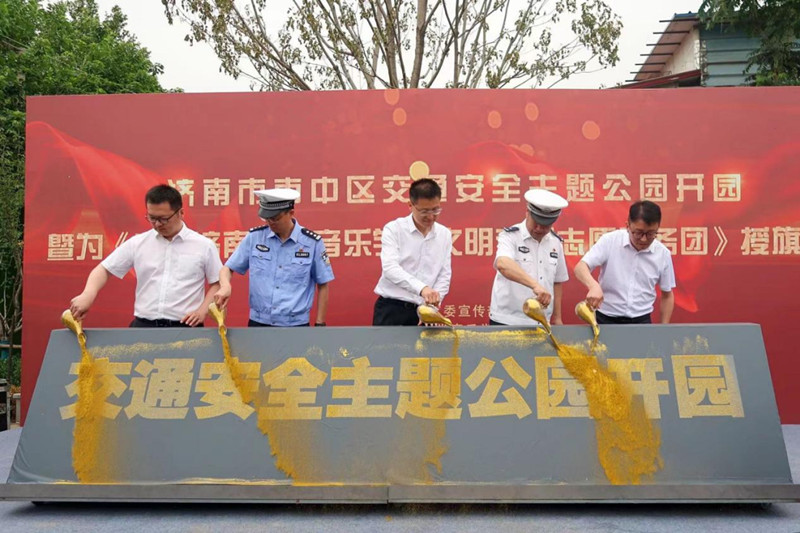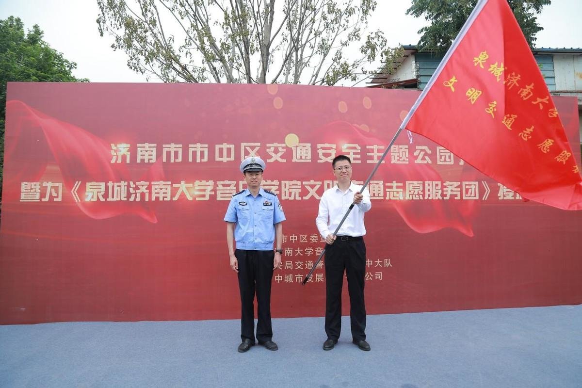 活动现场,尹治国处长为“太阳成集团tyc151cc泉城文明交通志愿服务团”授旗。与会领导集体上台剪彩,宣布济南市市中区交通安全主题公园正式开放。