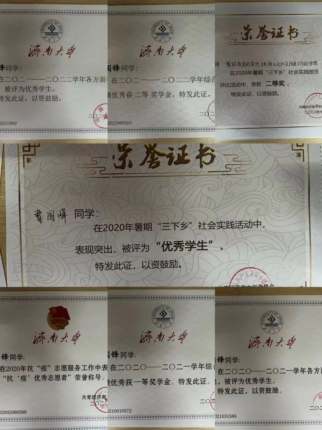 2020- -2021学年获“校级一等奖学金”并评为“优秀学生”
