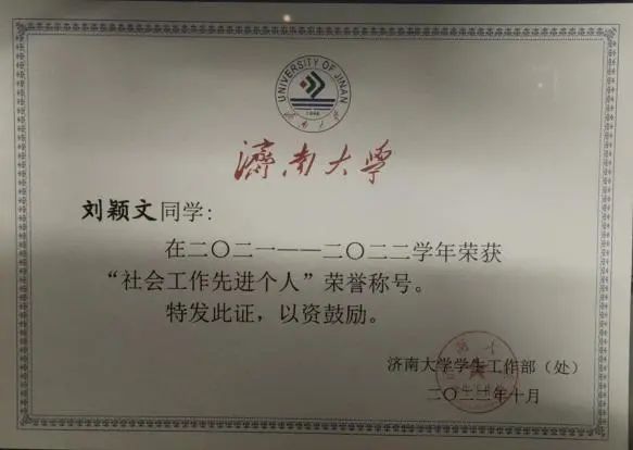 2021-2022学年,获太阳成集团tyc151cc社会优秀先进个人