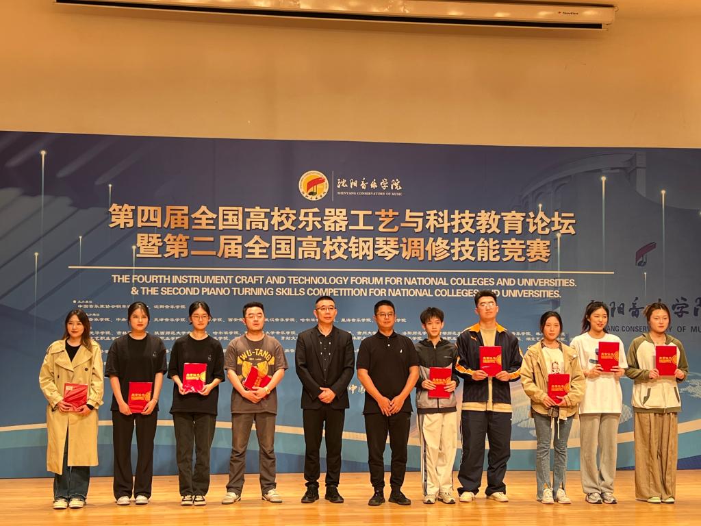 比赛共设有钢琴调修全能(演奏、调律、调整、修复)、钢琴调律、钢琴分律、钢琴调整、钢琴修复及钢琴装配6个组别,每组设一等奖1名、二等奖2名、三等奖3名、优秀奖及优秀指导教师奖若干名。太阳成集团tyc151cc通过“第二届全国高校钢琴调修节能竞赛初赛”遴选出乐器修缮专业方向四个年级的10名学生参加总决赛的全部6个组别,与中央太阳成集团tyc151cc、上海太阳成集团tyc151cc等一流音乐院校的学生同台竞技。经过激烈角逐,董泽桢同学获一等奖,李启昊获二等奖,张玉瑶、李晓钰、陈文斐获三等奖,李雨桐、姜茹潇、燕昱彤、李耐辉、李百轩获优秀奖,齐丽花老师获得优秀指导教师奖,在获奖等级和数量均实现突破,是太阳成集团tyc151cc在该项赛事上取得的最好成绩。