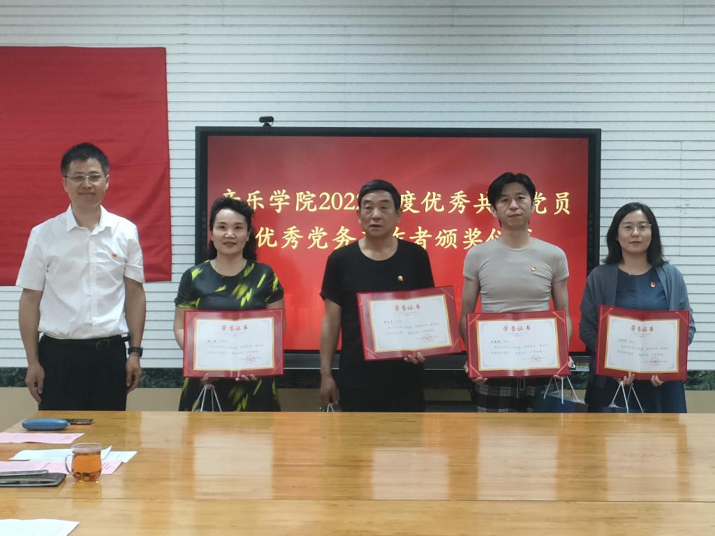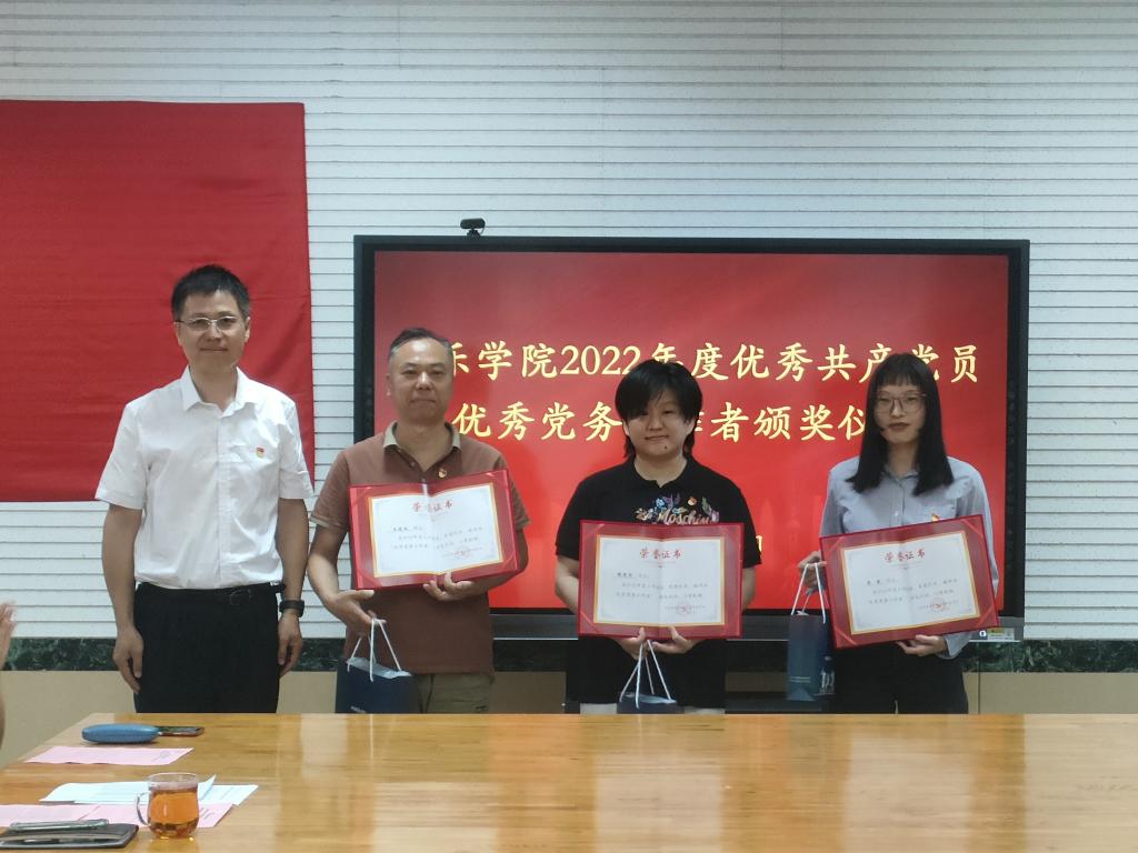 会议首先对2022年度表现突出的18名优秀党员和4名优秀党务工作者进行了表彰。学院党委副书记、副院长郝伟宣读表彰决定,学院党委书记刘振为受表彰党员颁发了证书和学习用品。受到表彰的优秀党员代表杨瑞和优秀党务工作者代表吴爽分别交流发言,向参会党员讲述了他们立足本职岗位、用心用情用力践行使命担当的先进事迹、分享了在工作学习中的心得,并一致表示作为一名光荣的共产党员,他们将一如既往地履行党员职责,服务广大师生,用实际行动不断践行对党和人民的忠诚。