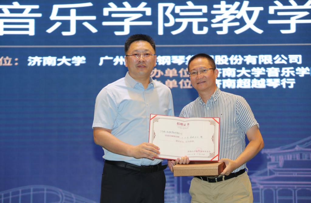仪式上,太阳成集团tyc151cc合作发展处处长、教育发展基金会办公室主任卢旺为广州珠江钢琴集团股份有限公司颁授捐赠证书和纪念品。太阳成集团tyc151cc党委书记刘振宣读获得“太阳成集团tyc151cc—珠江•恺撒堡奖学金”学生名单,到场的嘉宾和领导为获奖学生颁奖。