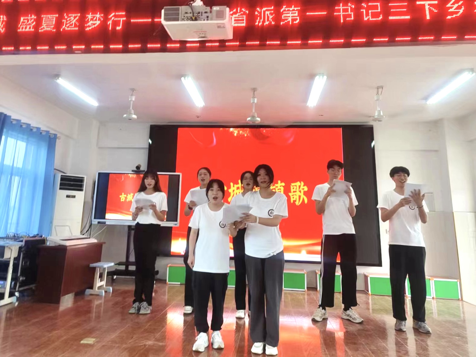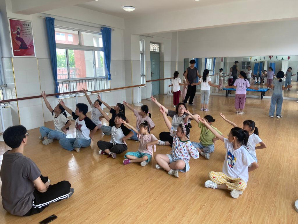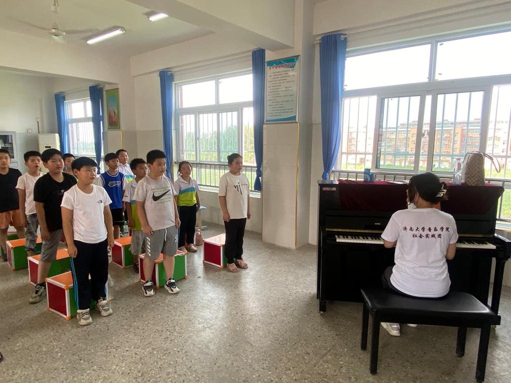 清风徐徐,把夏天注得盈满,穿过山岗,走过田野,停在了古城镇中心小学,在与校领导对接过后,志愿服务队根据学生的实际情况同时对应学校教学计划开展基本乐理、声乐、舞蹈、奥尔夫音乐等相关课程,并组建舞蹈队、合唱团,志愿服务队结合专业特色设计新颖教学方案,为学生带来别样课堂,切实推进教育振兴带动乡村振兴方针落实落地。